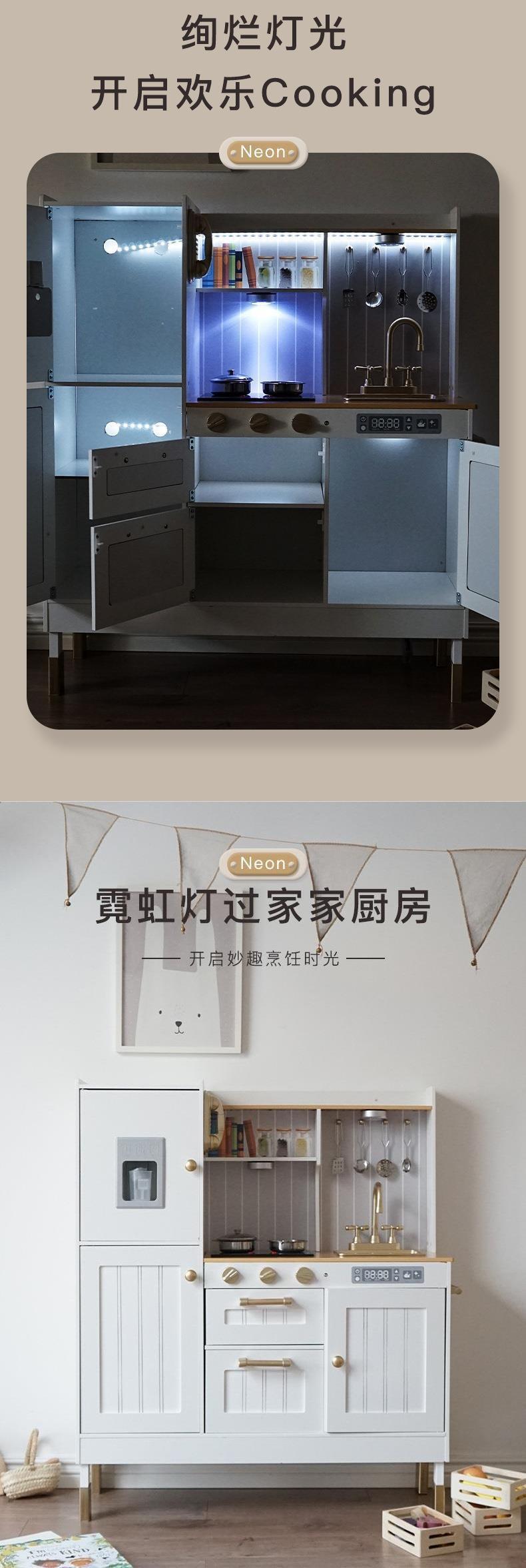 Casa de juegos de madera nueva cocina de simulación de estilo europeo refrigerador juguete niños y niñas cocina luminosa