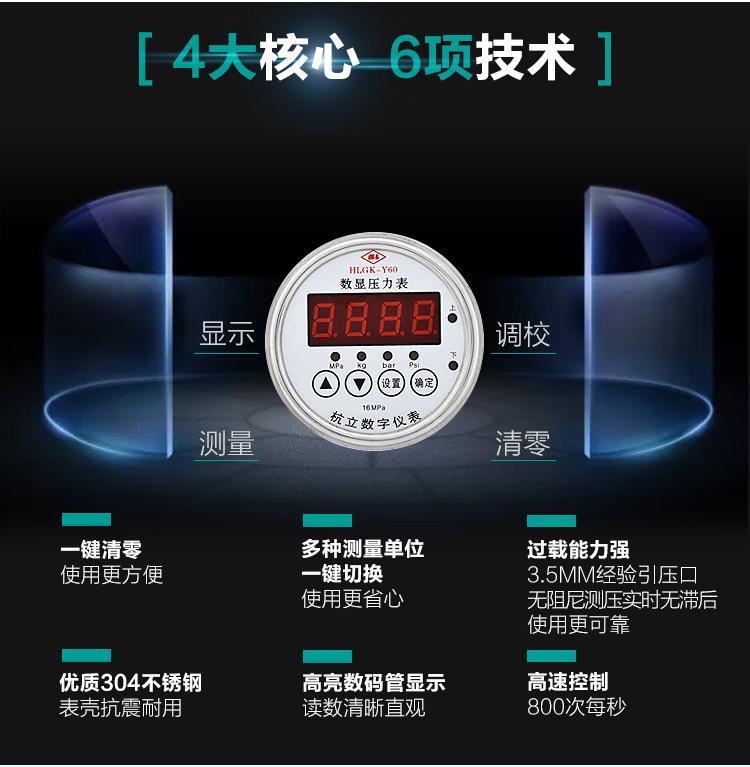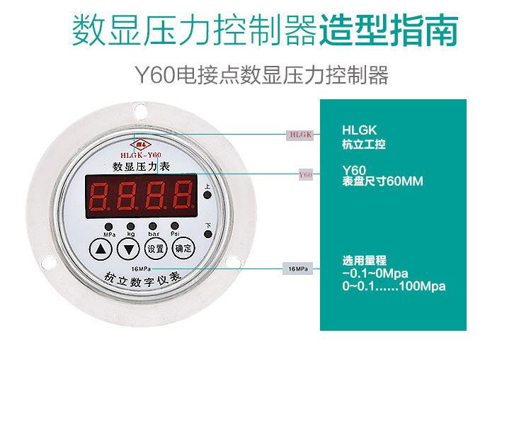 Manómetro de presión con pantalla digital HLGK-Y60, controlador de presión digital, interruptor de manómetro de contacto eléctrico, controlador inteligente