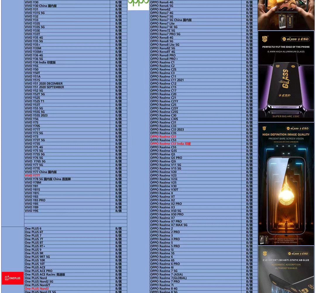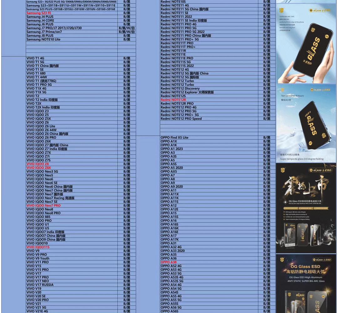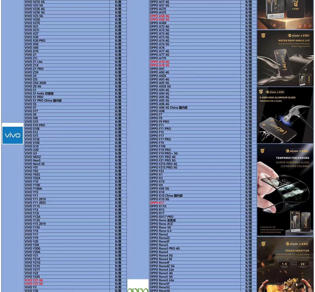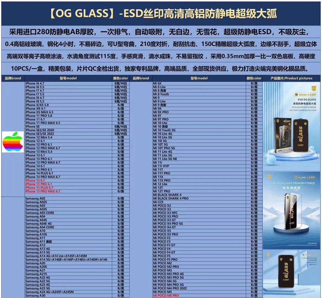 Og glass tempered film black (from 10 pieces per model), Og glass tempered film white (from 10 pieces per model)