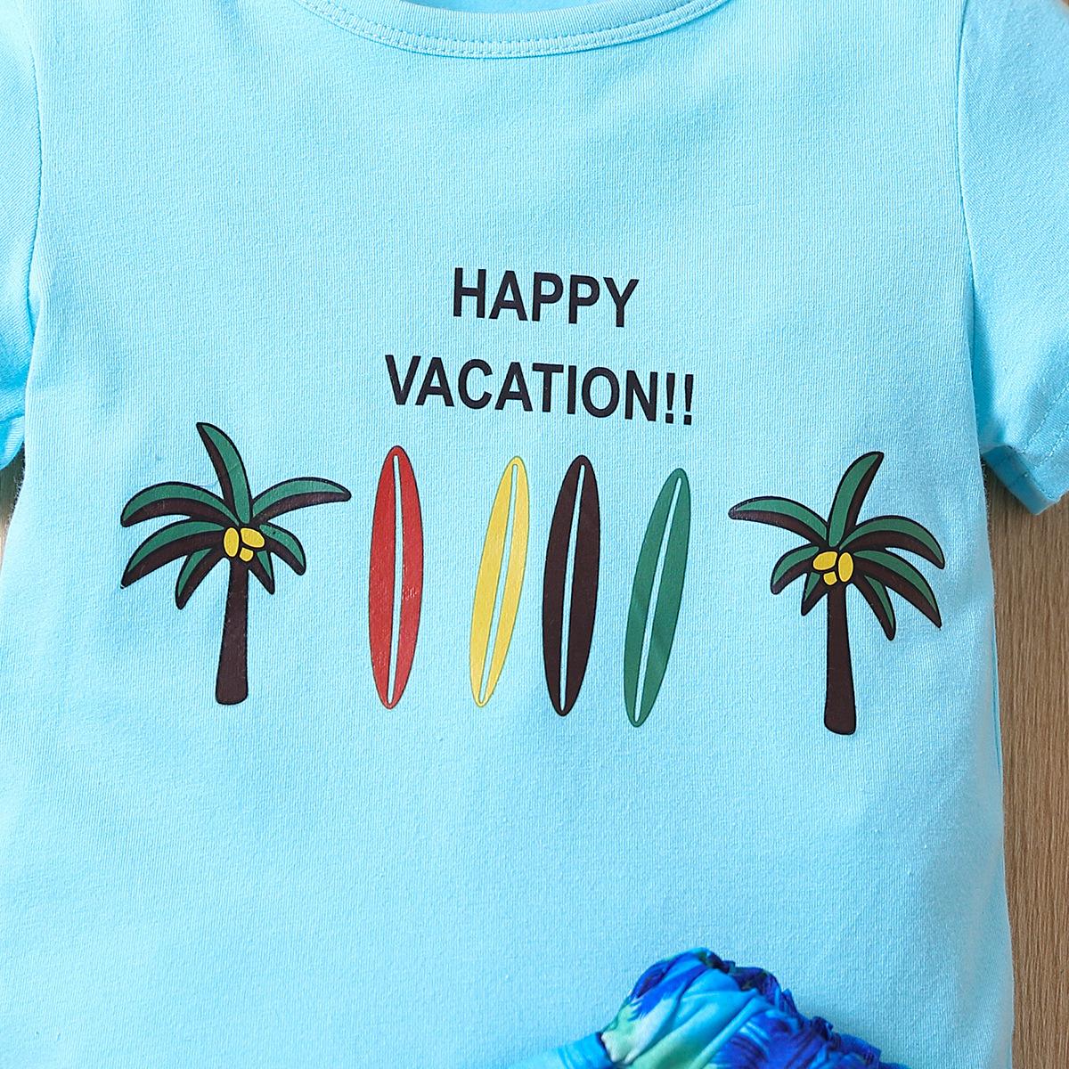 Traje de Niño Verano Camiseta Rayada + Shorts de Coco Dos Piezas Ropa Infantil Europea y Americana Moda de Playa Traje de Niño
