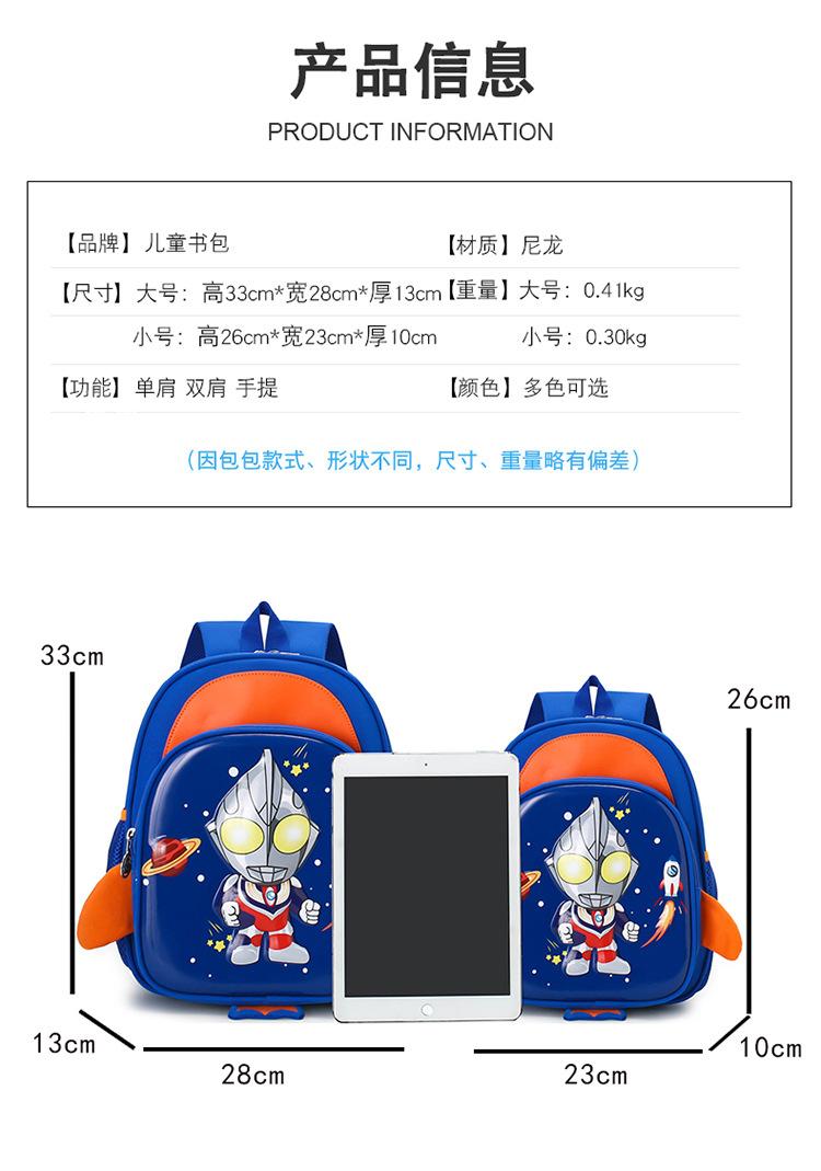 Mochila escolar Ultraman para niño, jardín de infancia 3-4-5-6 años, caricatura grande, mediana y pequeña clase, mochila para niños pequeños perdidos