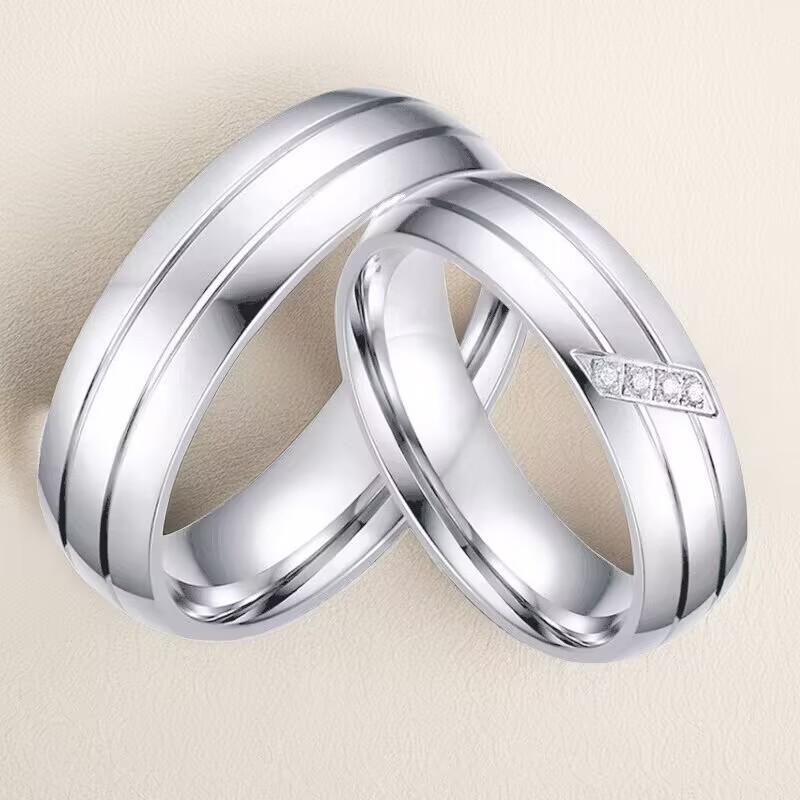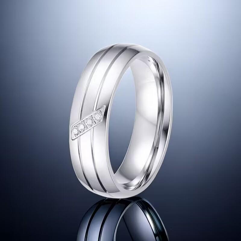Anillo de Diamantes de Acero de Titanio Simple y a la Moda al por Mayor de Fábrica Popular Europeo y Americano Anillo de Pareja Joyería de Mano Transfronteriza