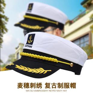 Sombrero de Capitán de Yate Estilo Marino de Copa Plana Blanco Transfronterizo Amazon Sombrero de Marinero para Adulto Fabricante