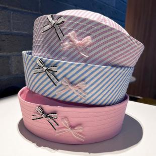 Estilo chica guapa de internet sombrero de marinero con lazo a rayas para mujer verano sombrero de ala doblada boina disfraz cosplay
