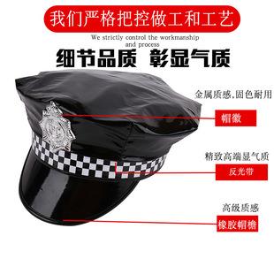 Amazon Comercio Exterior Nuevo Producto Sombrero de Uniforme de Cuero PU Brillante Servicio de Seguridad Fiesta Disfraz Cosplay Sombrero al por Mayor