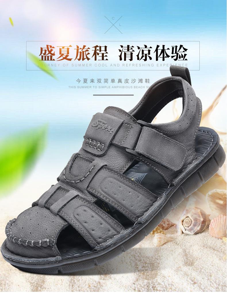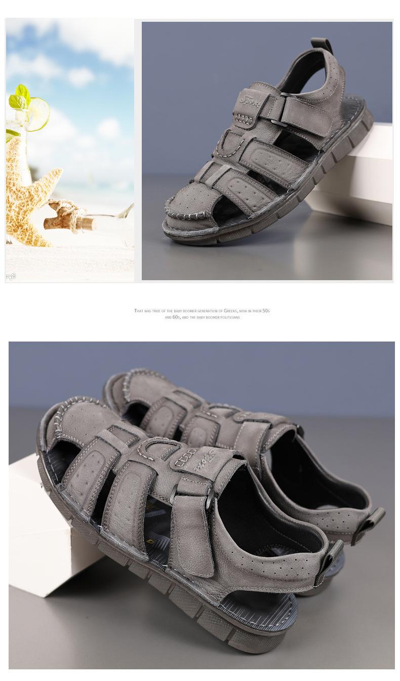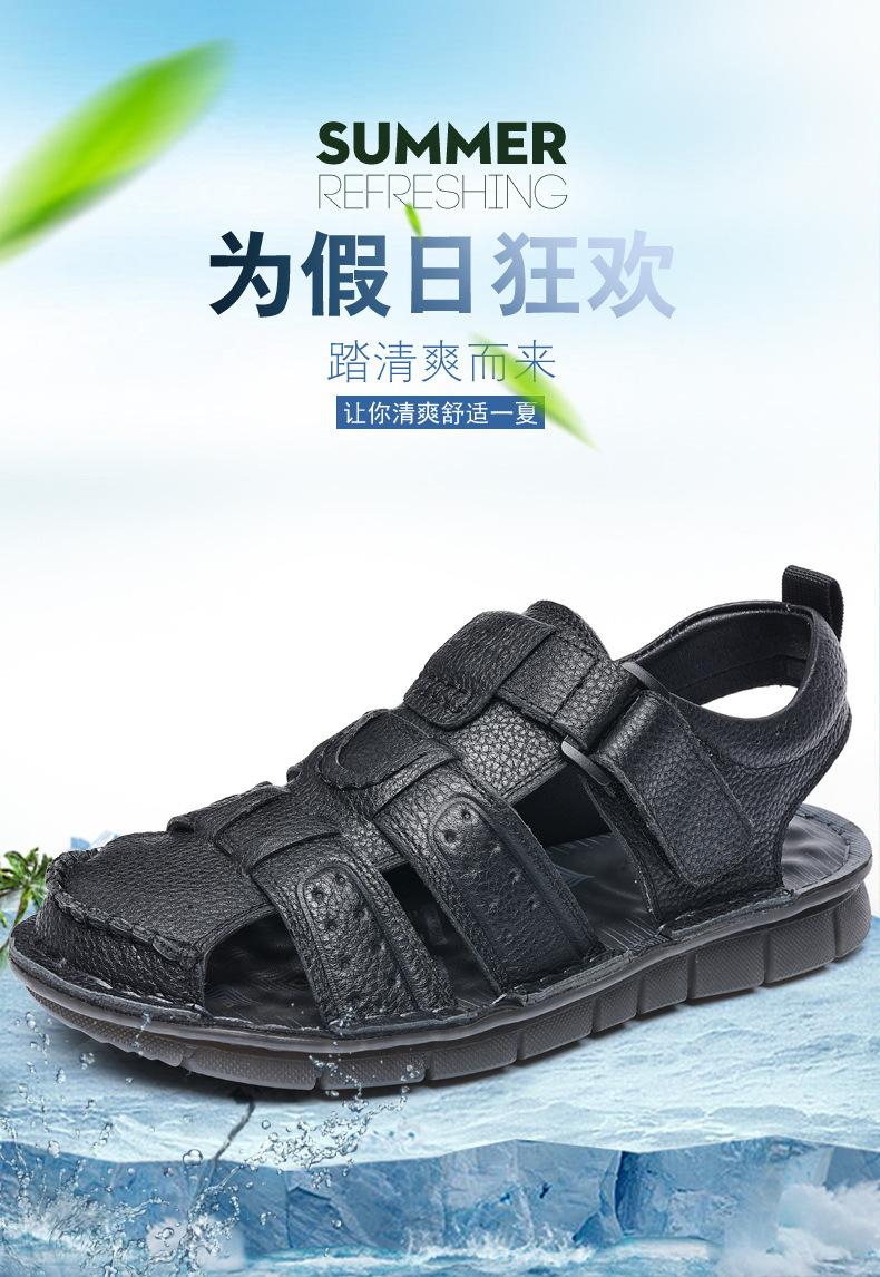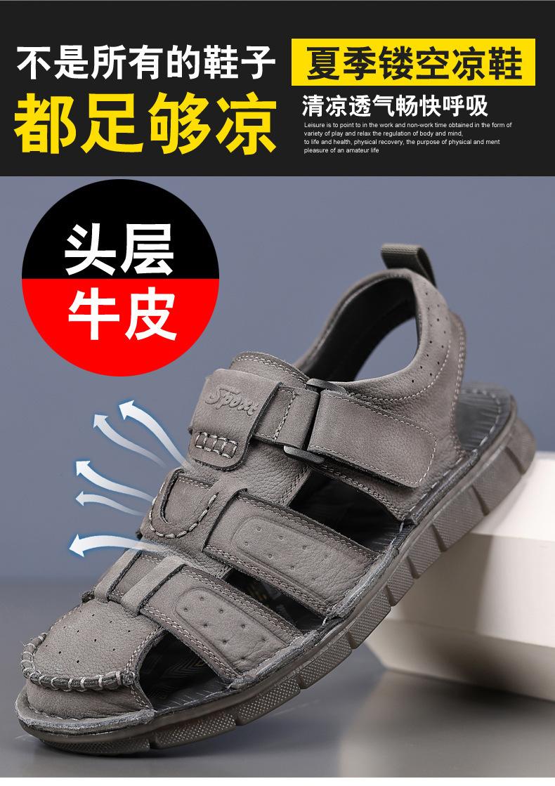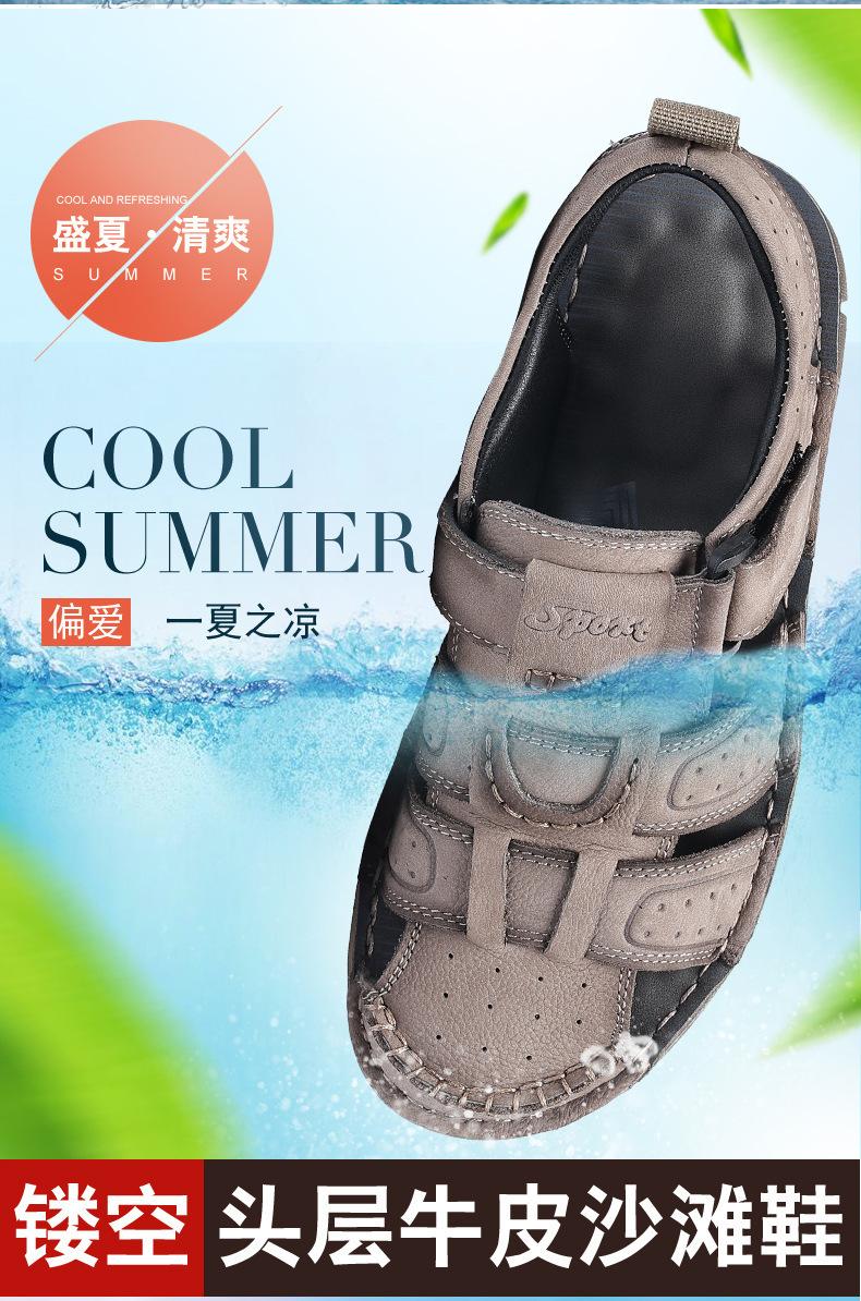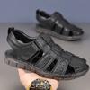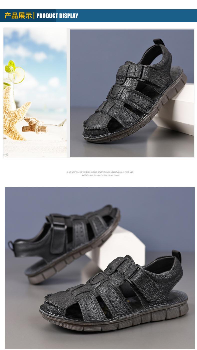 Sandalias de piel de vaca de primera capa de verano para hombre, zapatos de playa con puntera de cuero, transpirables, informales, suaves, para exteriores, para hombre de mediana edad