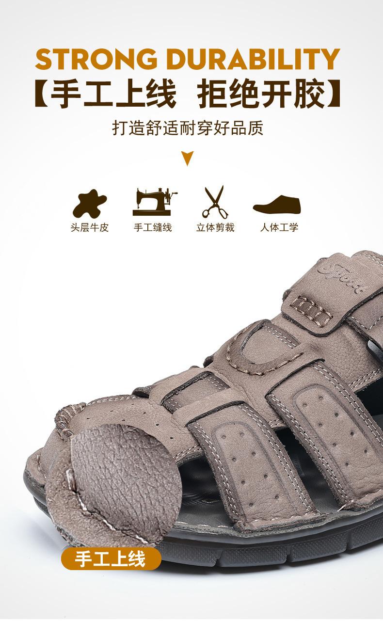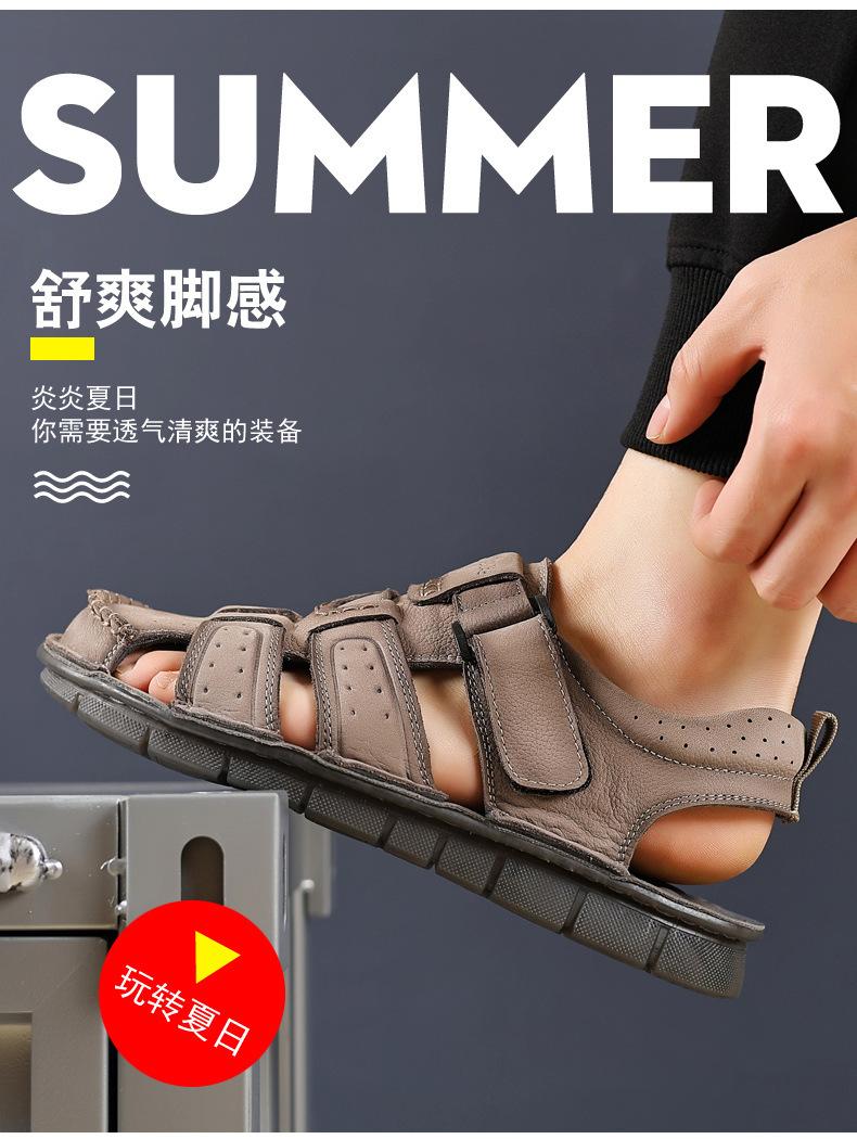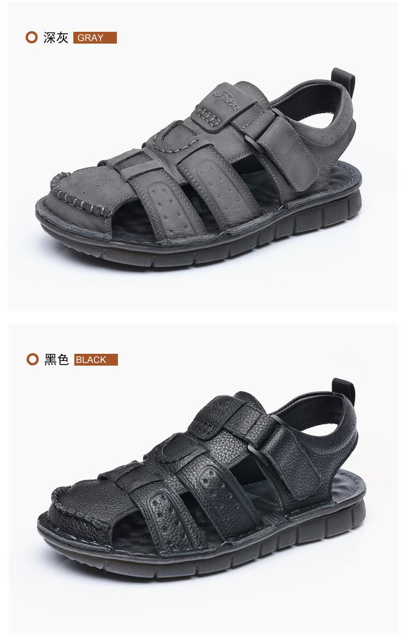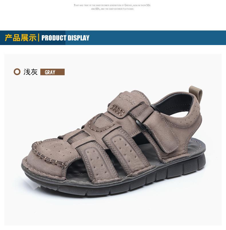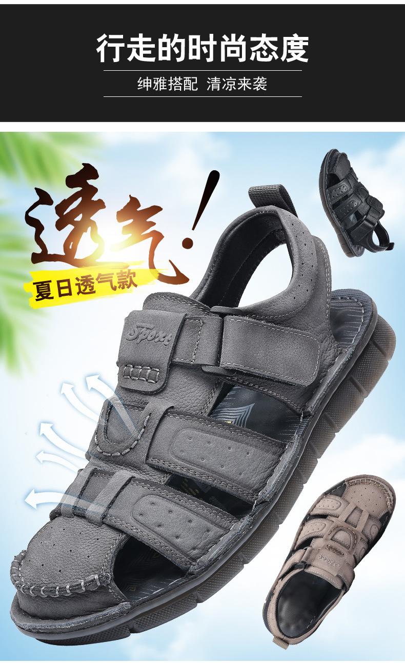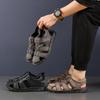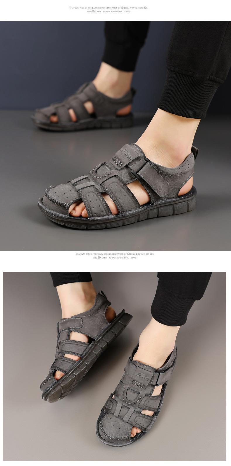 Sandalias de piel de vaca de primera capa de verano para hombre, zapatos de playa con puntera de cuero, transpirables, informales, suaves, para exteriores, para hombre de mediana edad