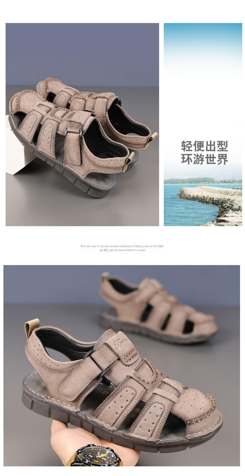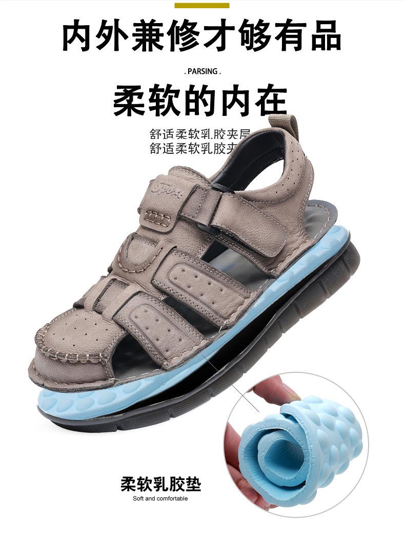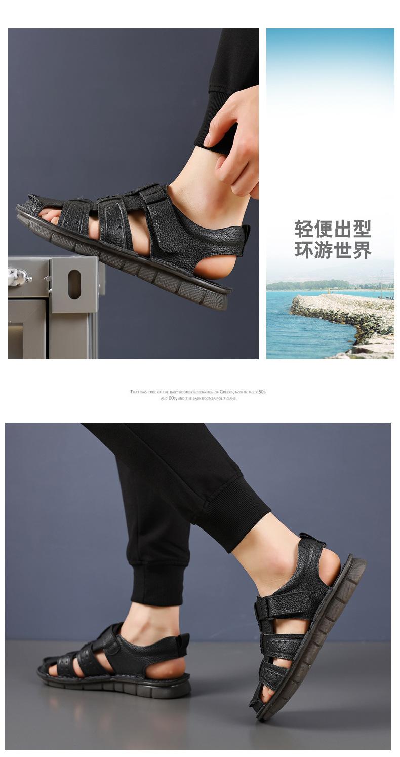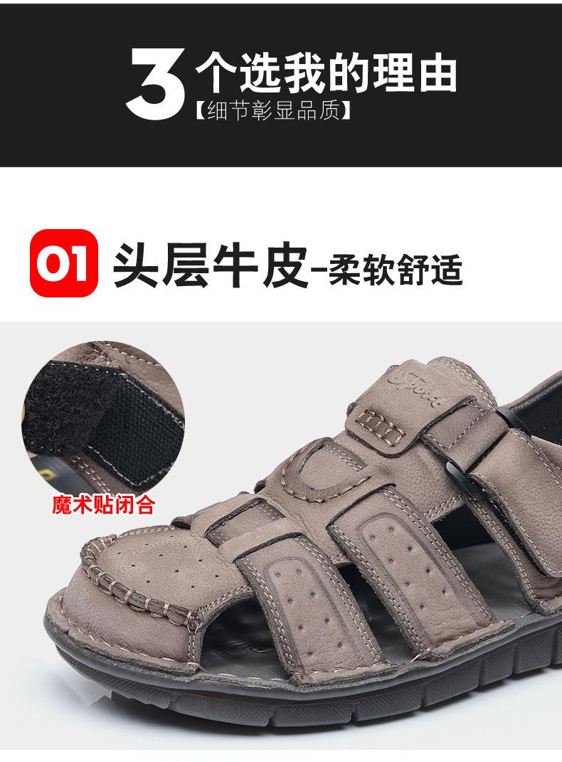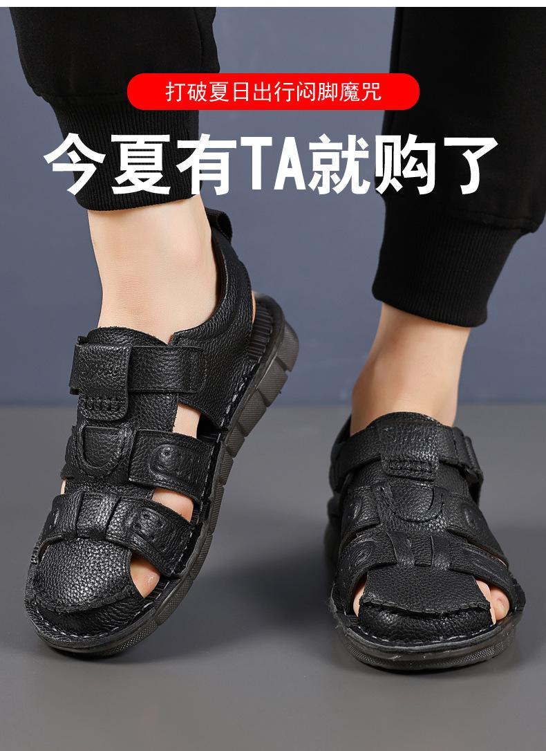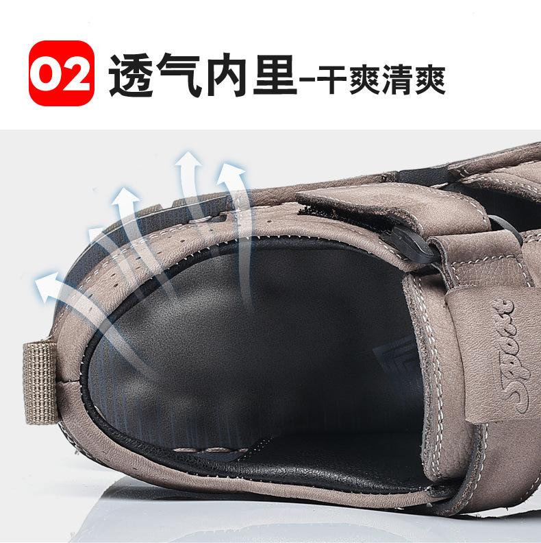 Sandalias de piel de vaca de primera capa de verano para hombre, zapatos de playa con puntera de cuero, transpirables, informales, suaves, para exteriores, para hombre de mediana edad