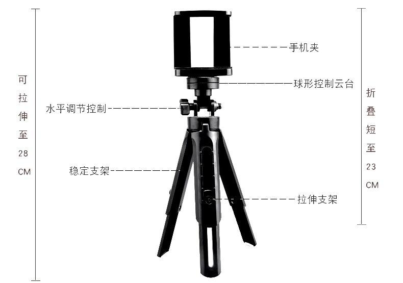 Soporte de escritorio para teléfono móvil telescópico Net Red transmisión en vivo selfie trípode grabación de video posición fija de la máquina trípode universal