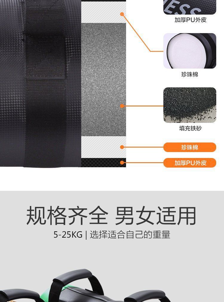 Bolsa de Energía para Fitness Bolsa con Peso Equipo de Fitness para Entrenamiento Físico Sentadilla Desarrollo Muscular Levantamiento de Pesas Saco de Arena Gimnasio Multifunción