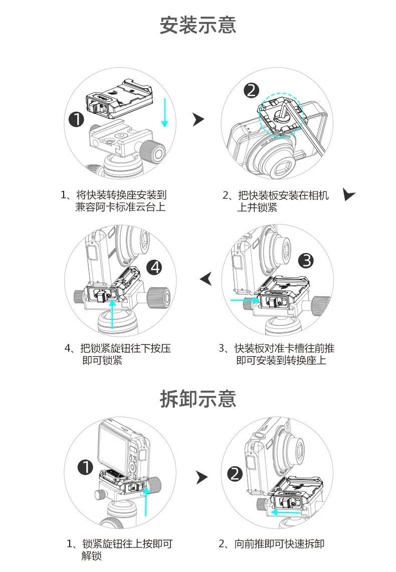 Asiento de conversión rápida Aka Micro Cámara individual Estabilizador de giro/inclinación Trípode Movimiento Placa de liberación rápida Base