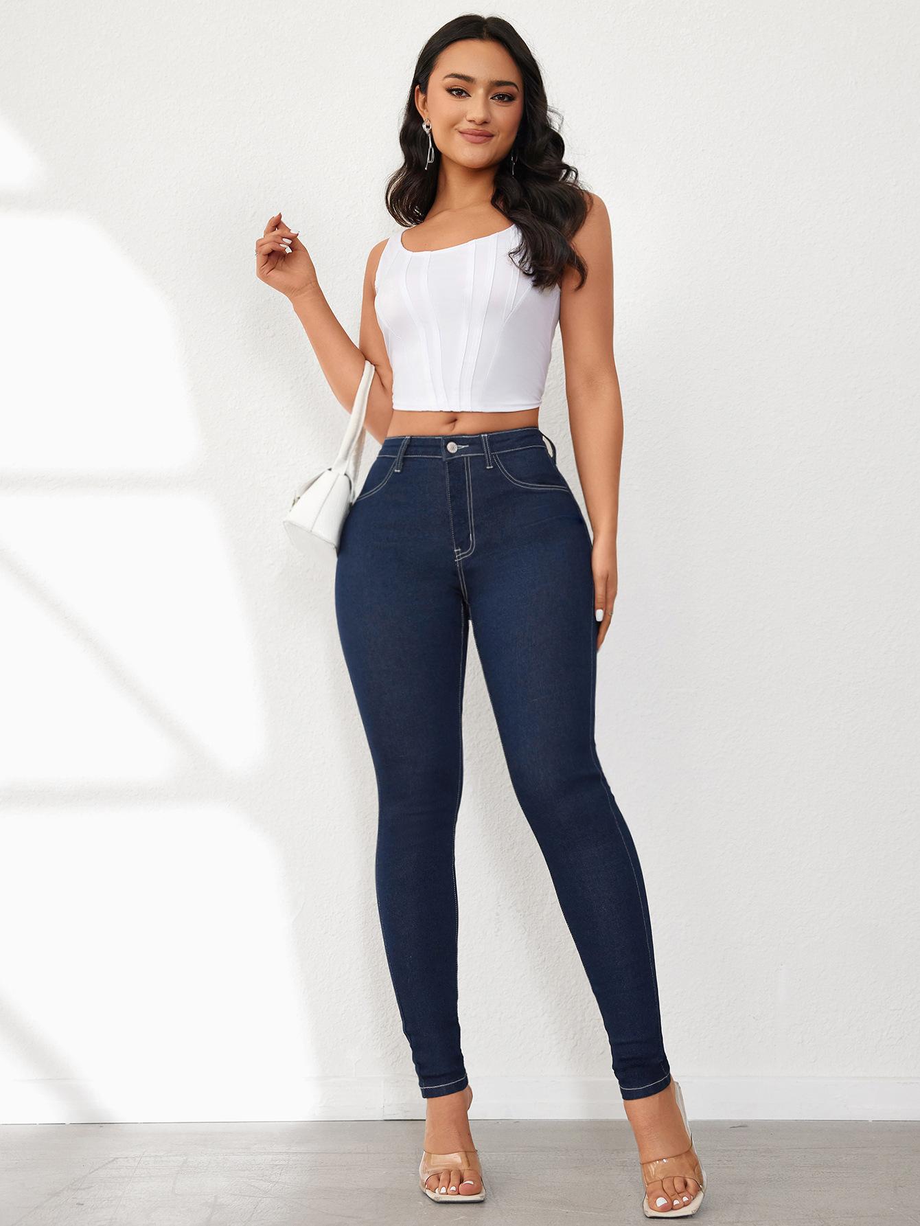 Pantalones vaqueros ajustados y elásticos de pierna retro americanos de moda europea y americana de Amazon 2024