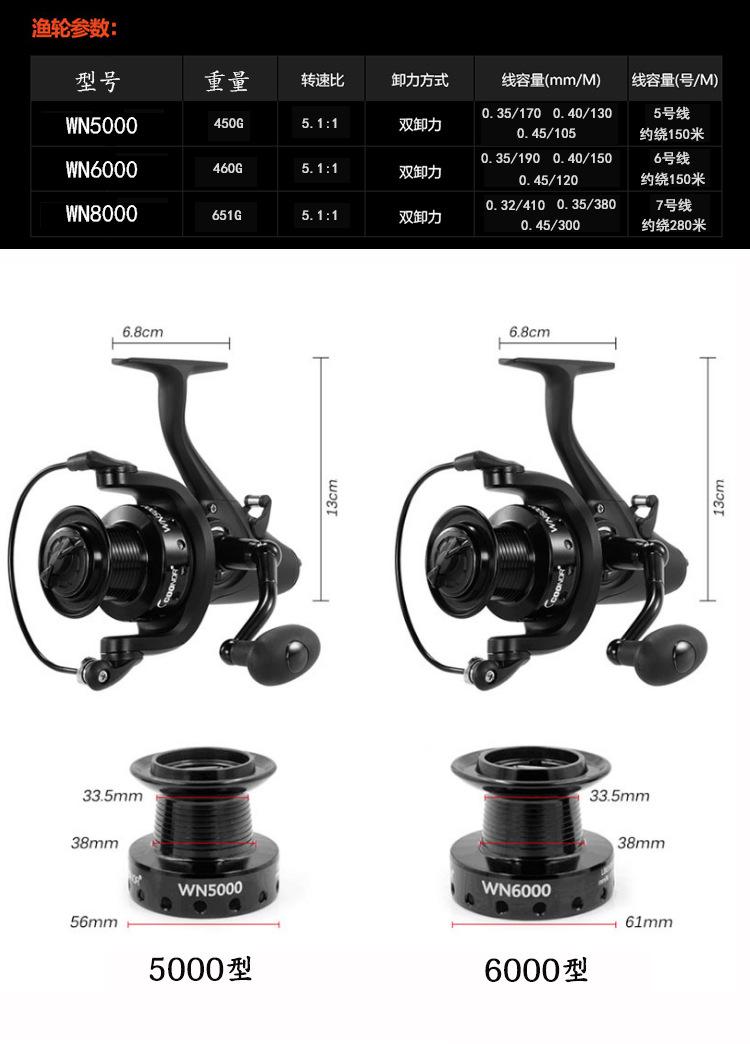 Antes de usar, ajuste las fuerzas de descarga delantera y trasera. Generalmente, la fuerza de descarga delantera es ligeramente ajustada para el pez caminante, y la fuerza de descarga trasera es relativamente floja. Cuando la caña se lanza y se coloca en el soporte para esperar el pez, levante la manivela y cambie a la fuerza de descarga trasera, de modo que después de capturar el pez, la fuerza de descarga trasera relativamente floja pueda liberar fácilmente la línea y hacer sonar la alarma a tiempo; después de cerrar la caña, gire el balancín de recogida para cambiar automáticamente a la fuerza de descarga delantera y comenzar a pasear el pez, ¡lo cual es muy conveniente!