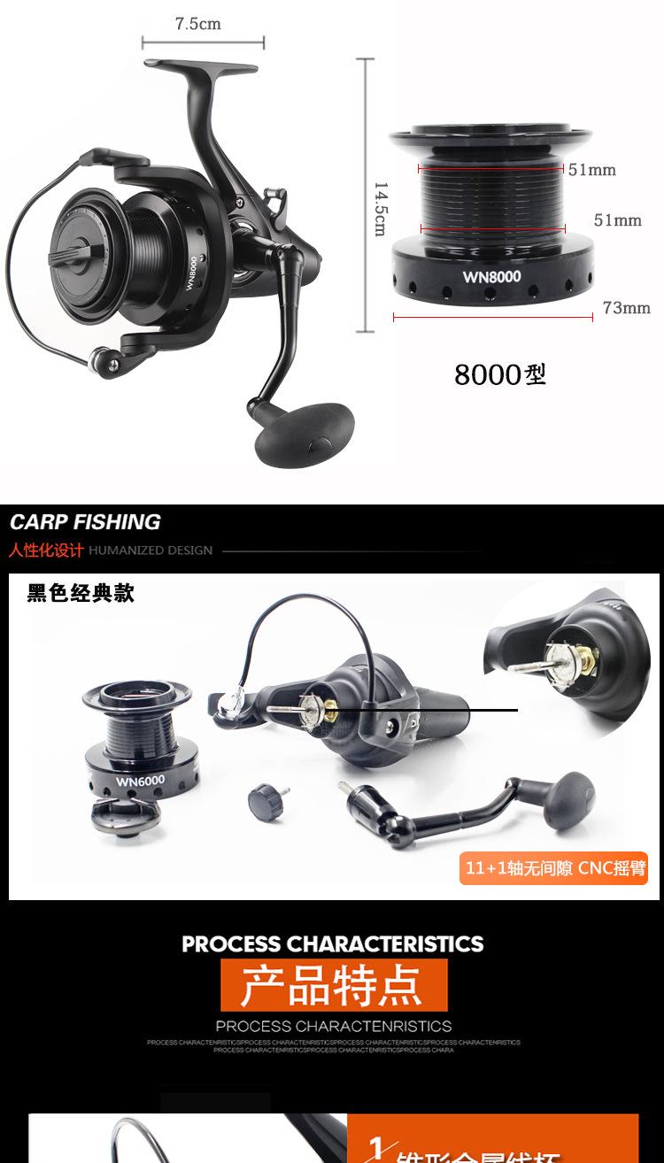Este carrete de pesca es un carrete de pesca de doble descarga delantera y trasera, utilizado para pescar en la biblioteca, y utilizado con alarmas de pesca.