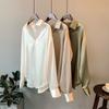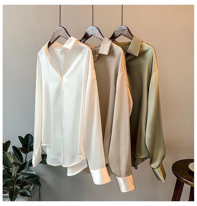Camisa de satén de manga larga para mujer, diseño de primavera y otoño 2024, nueva camisa versátil con drapeado retro estilo Hong Kong.