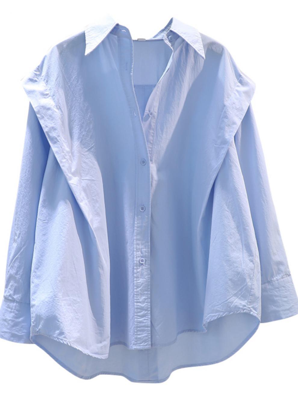 Camisa holgada con diseño de camisa, estilo nicho, para mujer, otoño, primavera y otoño, camisa holgada de algodón de manga larga con volantes