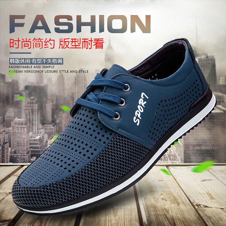 Zapatos de Hombre Transfronterizos 2024 Verano Nuevo Zapatos de Malla con Agujeros Zapatos Casuales Transpirables de Corte Bajo con Cordones Suela Suave Zapatos de Trabajo