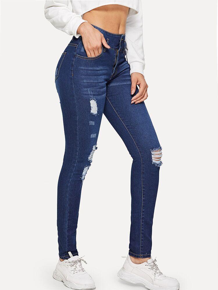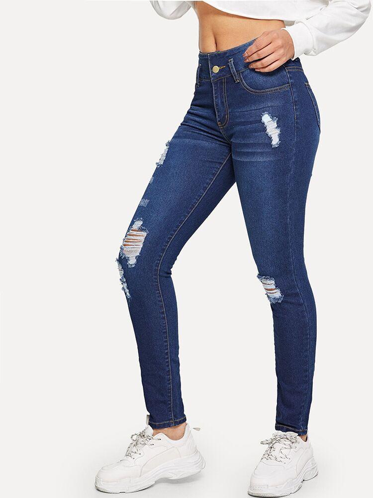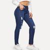 Pantalones vaqueros rotos de Amazon, lavados transfronterizos, pantalones de estudiante rojos para mujer.