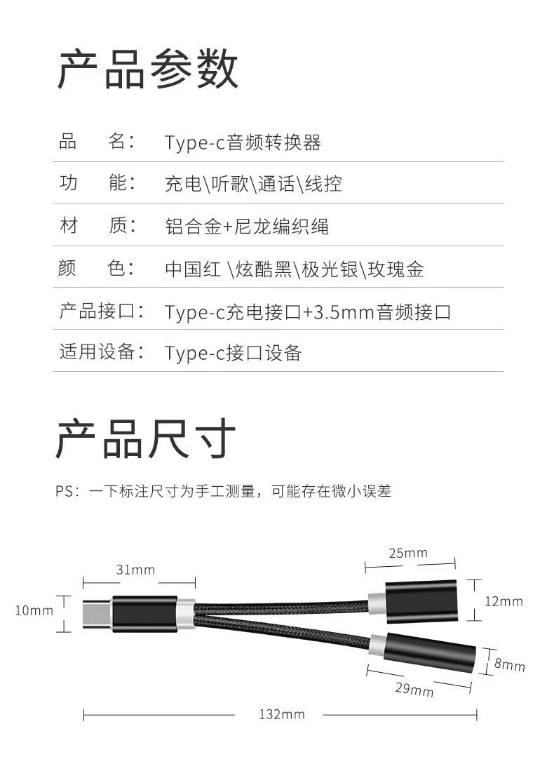 Black: type-c to 3.mm+type-c, Rose gold: type-c to 3.mm+type-c, Aurora silver: type-c to 3.mm+type-c, Local go...