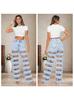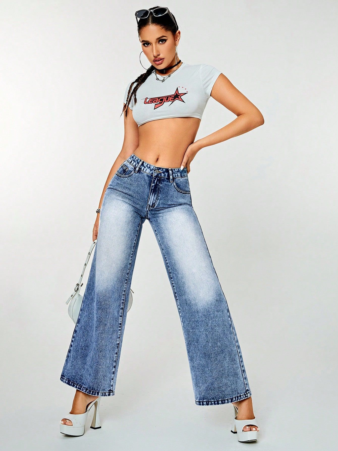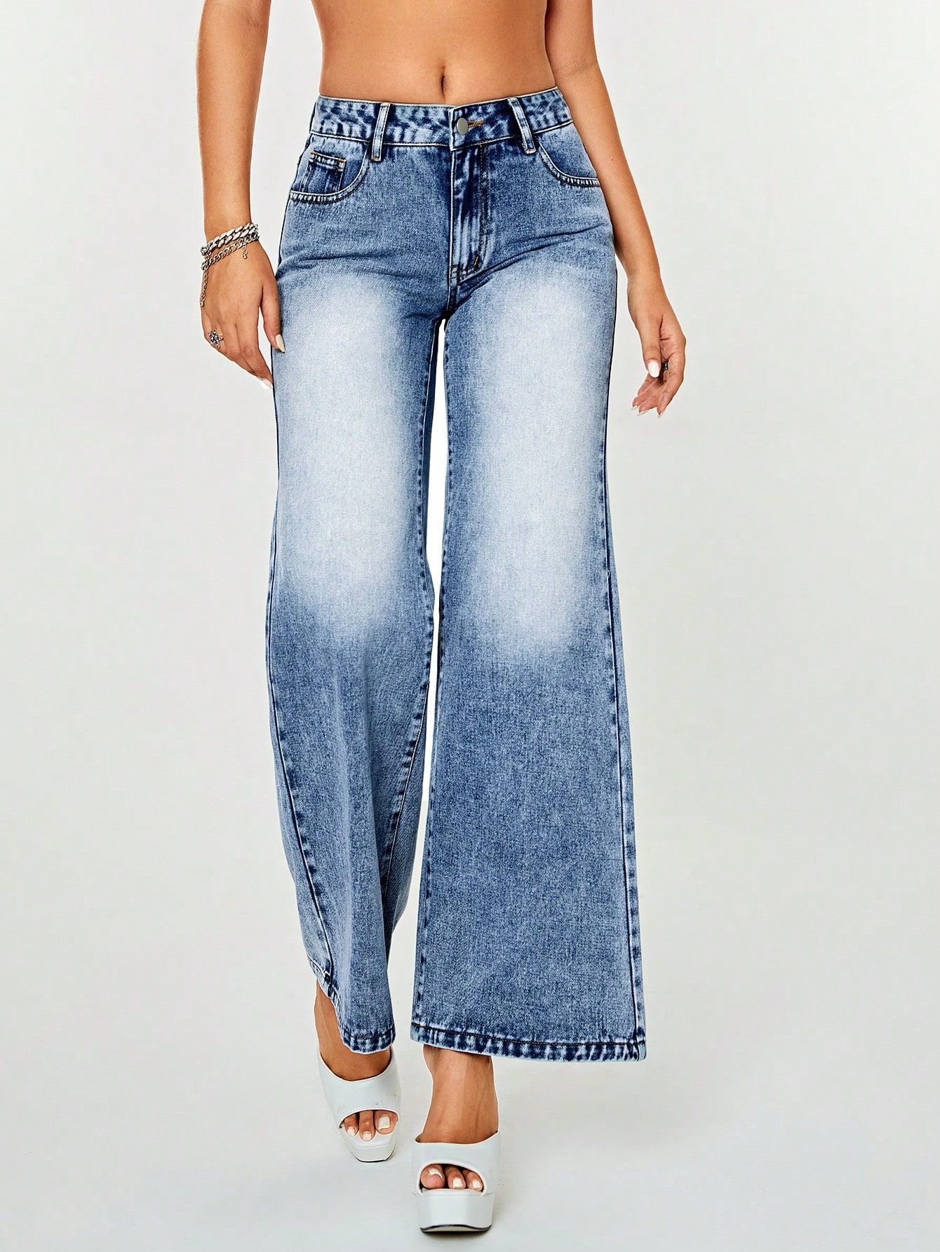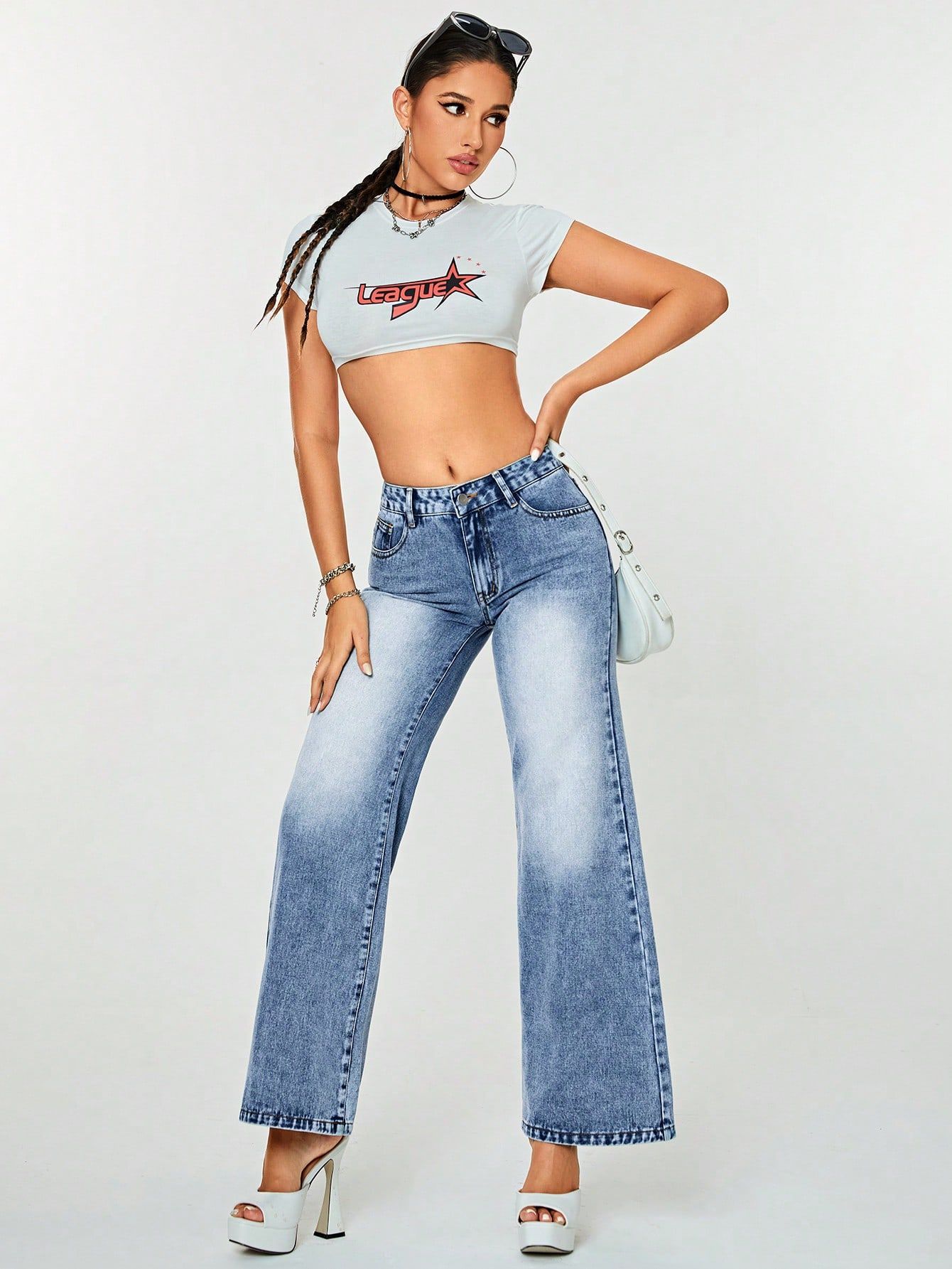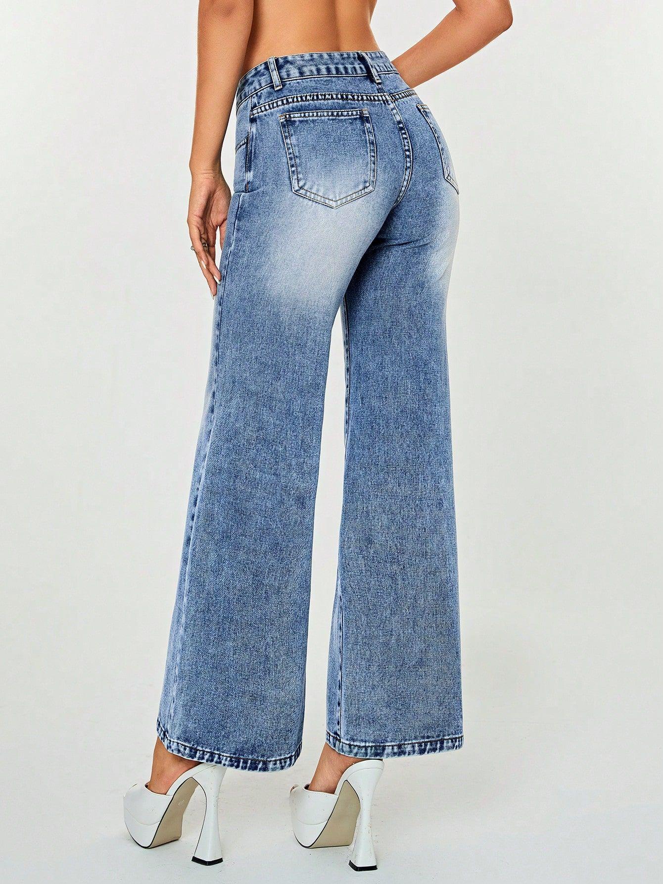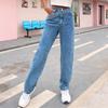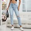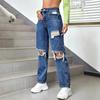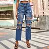 15083# Pantalones vaqueros rectos casuales de cintura alta con inserciones europeas y americanas para mujer transfronterizas de Amazon