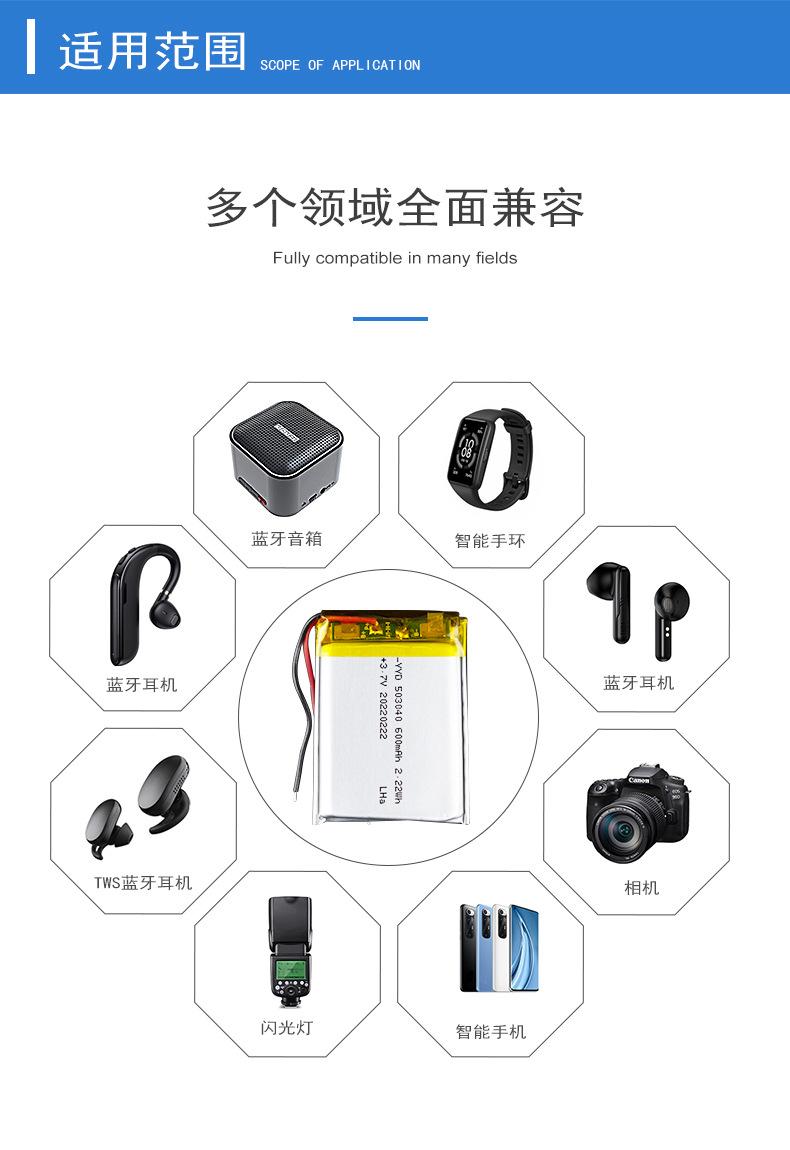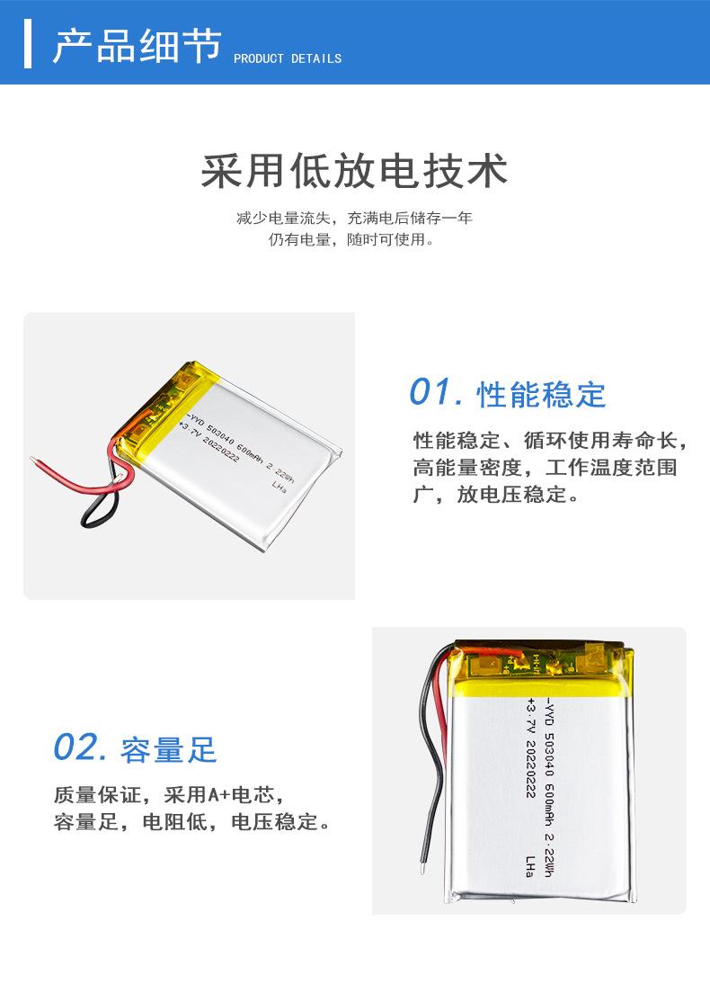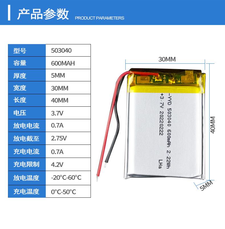 Bateria de polímero de lítio 503 040 600mAh instrumento de beleza umidificador brinquedo pequeno digital 3.7V bateria recarregável