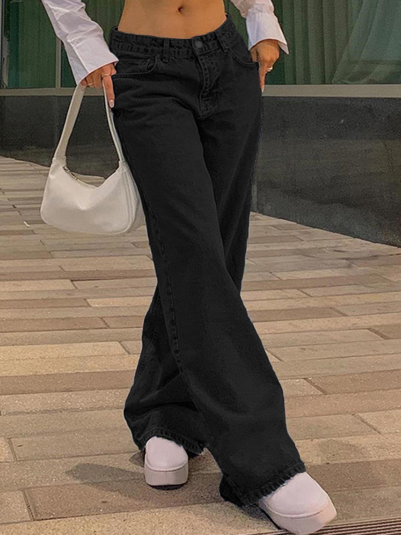 Pantalones vaqueros de cintura baja explosivos de AliExpress 2024, pantalones de pierna recta retro de moda, pantalones vaqueros holgados de estilo urbano.