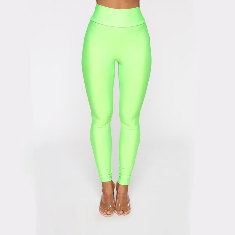 Leggings de Color Puro Estilo Europeo y Americano Primavera Verano 2025 Cintura Alta Leggings de Color Puro Elásticos Casuales Pantalones Deportivos de Yoga para Mujer
