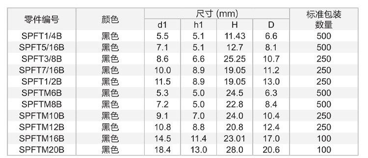 SPFT1/4B, SPFT5/16B, SPFT3/8B, SPFT7/16B, SPFT1/2B, SPFTM6B, SPFTM8B, SPFTM10B, SPFTM12B, SPFTM16B, SPFTM20B