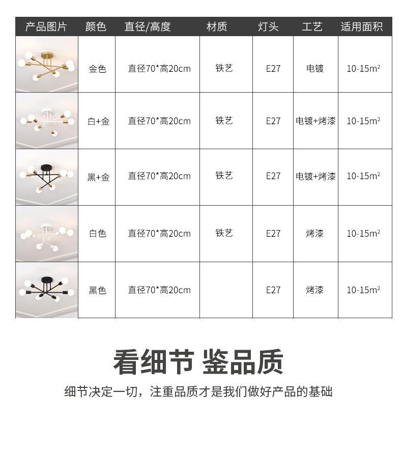 Lámpara de Techo para Sala de Estar Transfronteriza Moderna Minimalista para Restaurante de Hierro con Múltiples Cabezales Lámpara de Dormitorio Creativa de Estilo Industrial para Interiores
