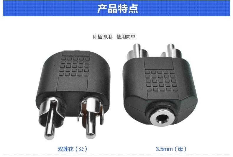 Adaptador doble RCA (macho) a 3,5 mmSe utiliza para convertir la interfaz de salida de la señal de audio, y puede transmitir el dispositivo de salida al audio y al televisor como dos pares de sonidos Lotus, y emitir como señales estéreo.