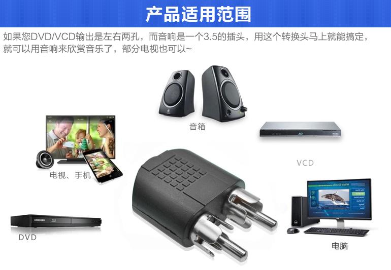 【Uso del producto】Convierte el estéreo de dos lotos de DVD/VCD a una interfaz 3.5 y transmite el sonido al sistema de sonido y al televisor.