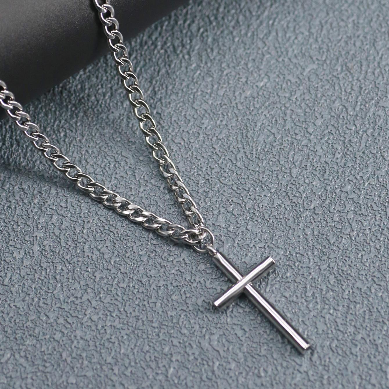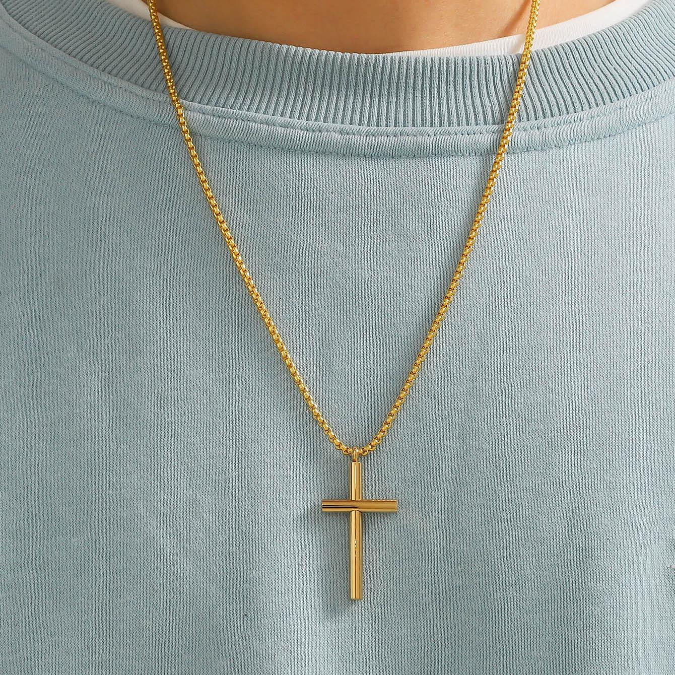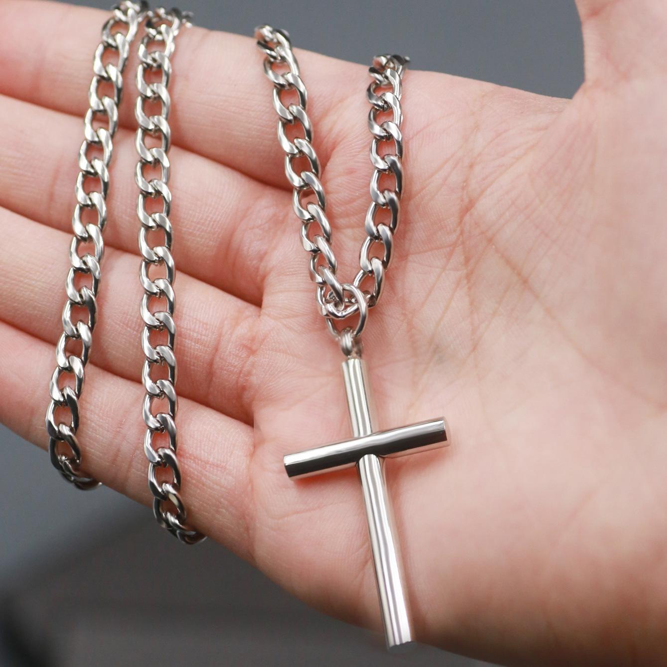 Colgante de cruz de cadena nk de acero inoxidable brillante estilo hip hop simple europeo y americano, collar de moda para hombres, joyería al por mayor
