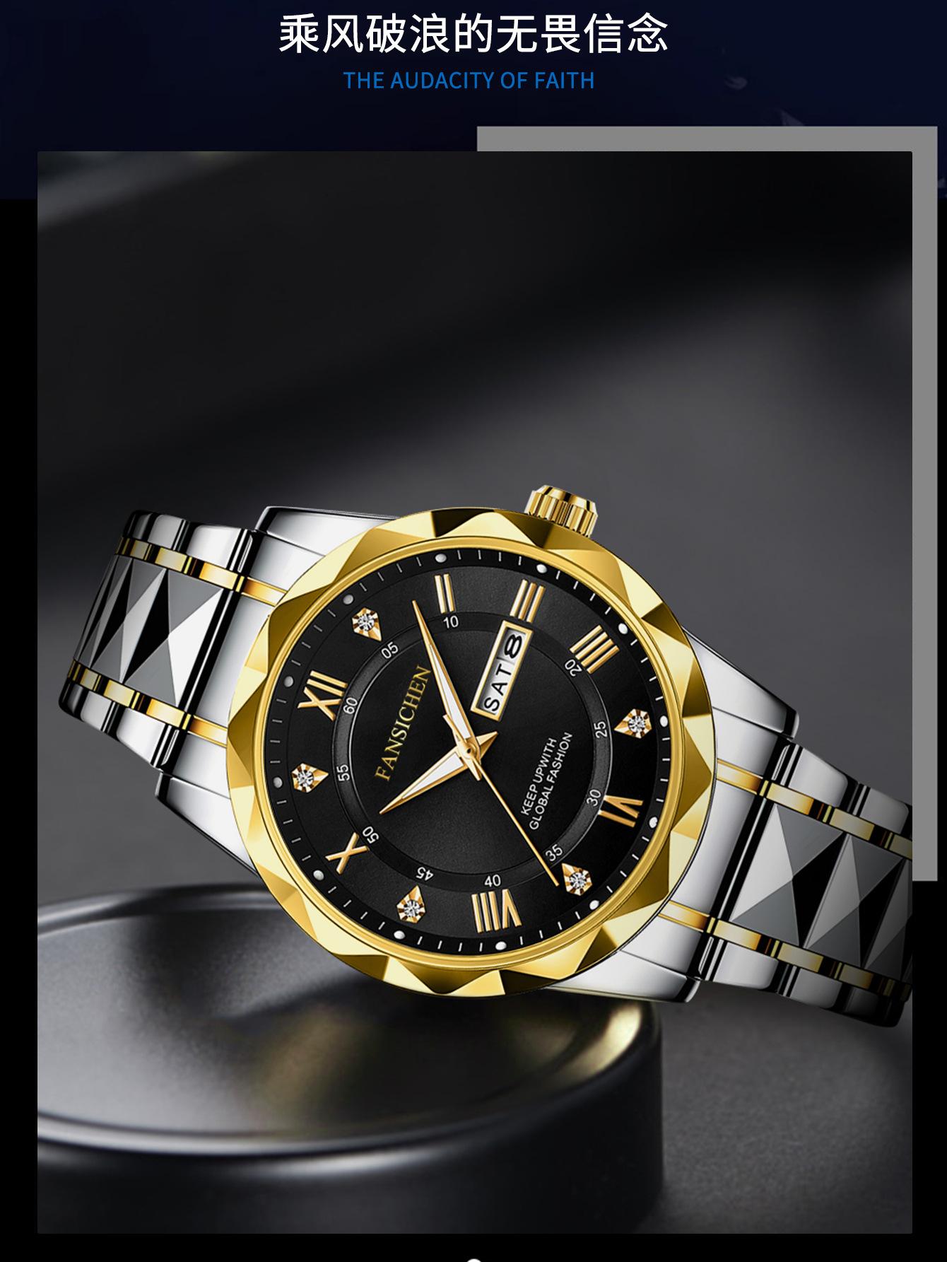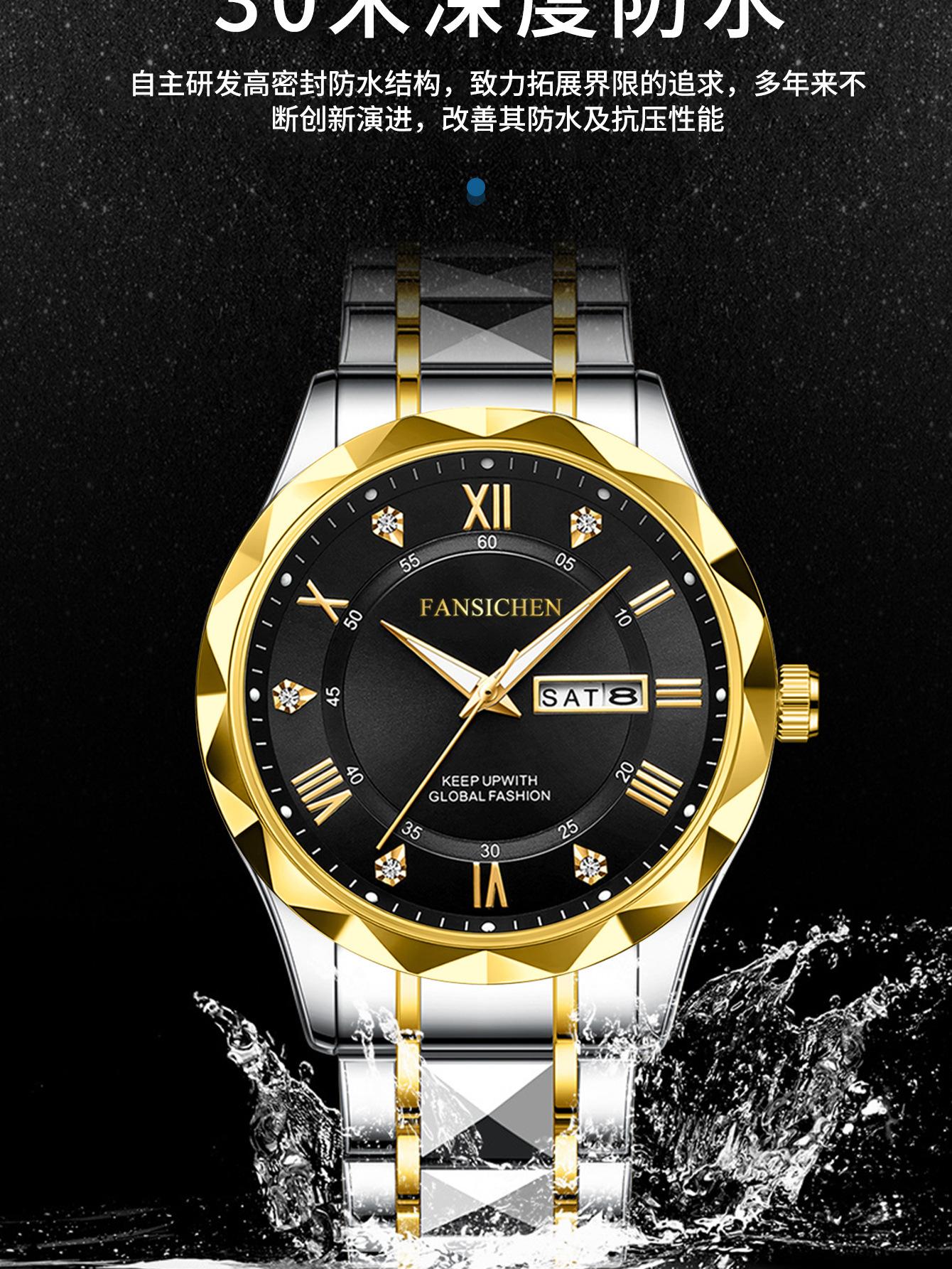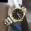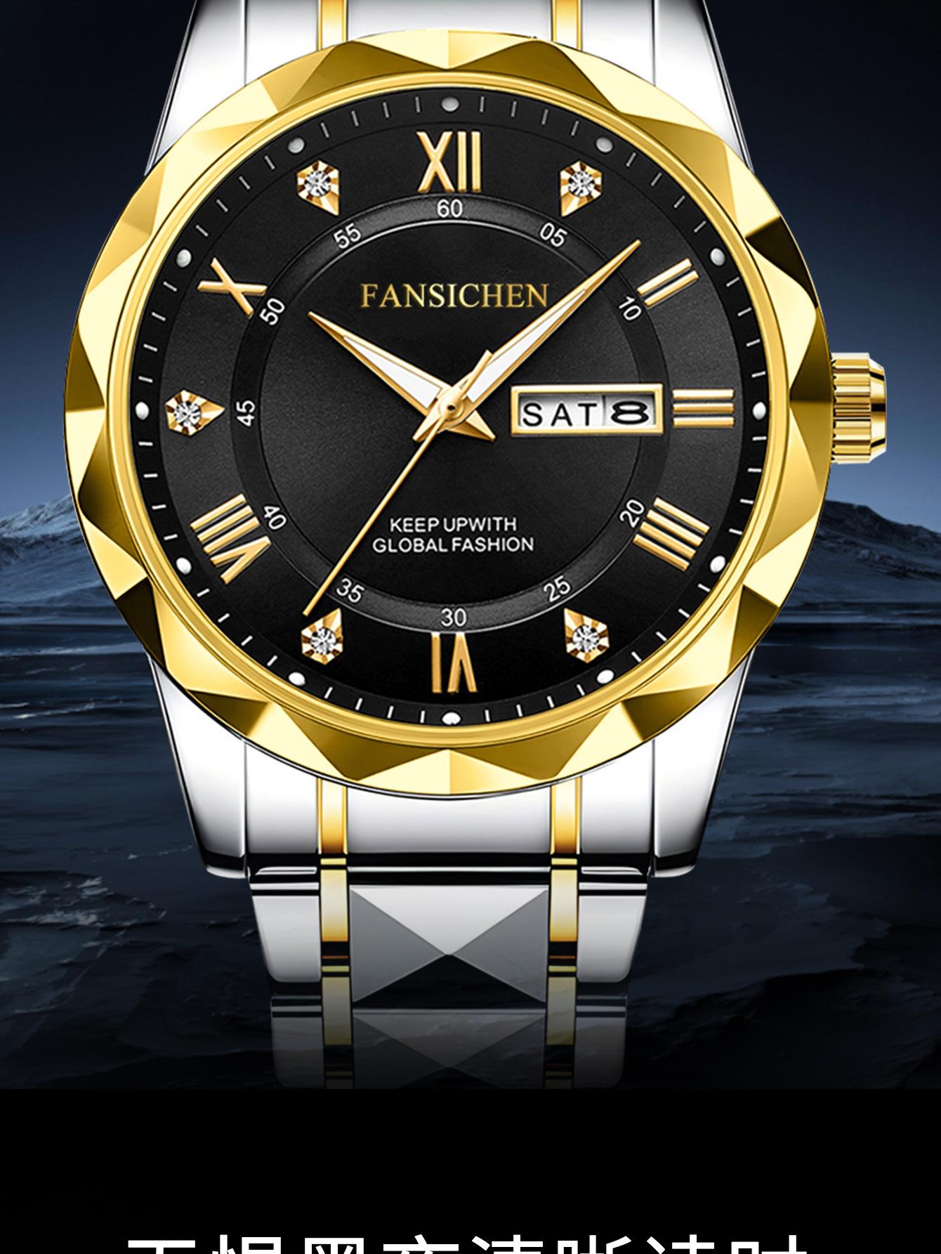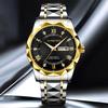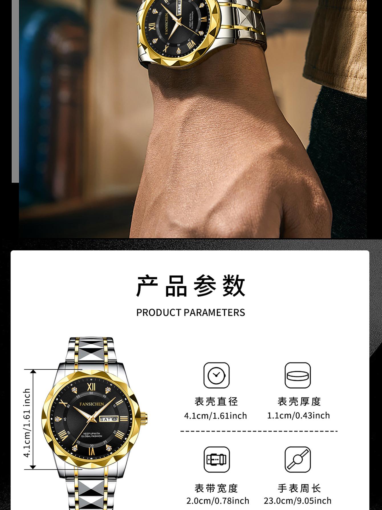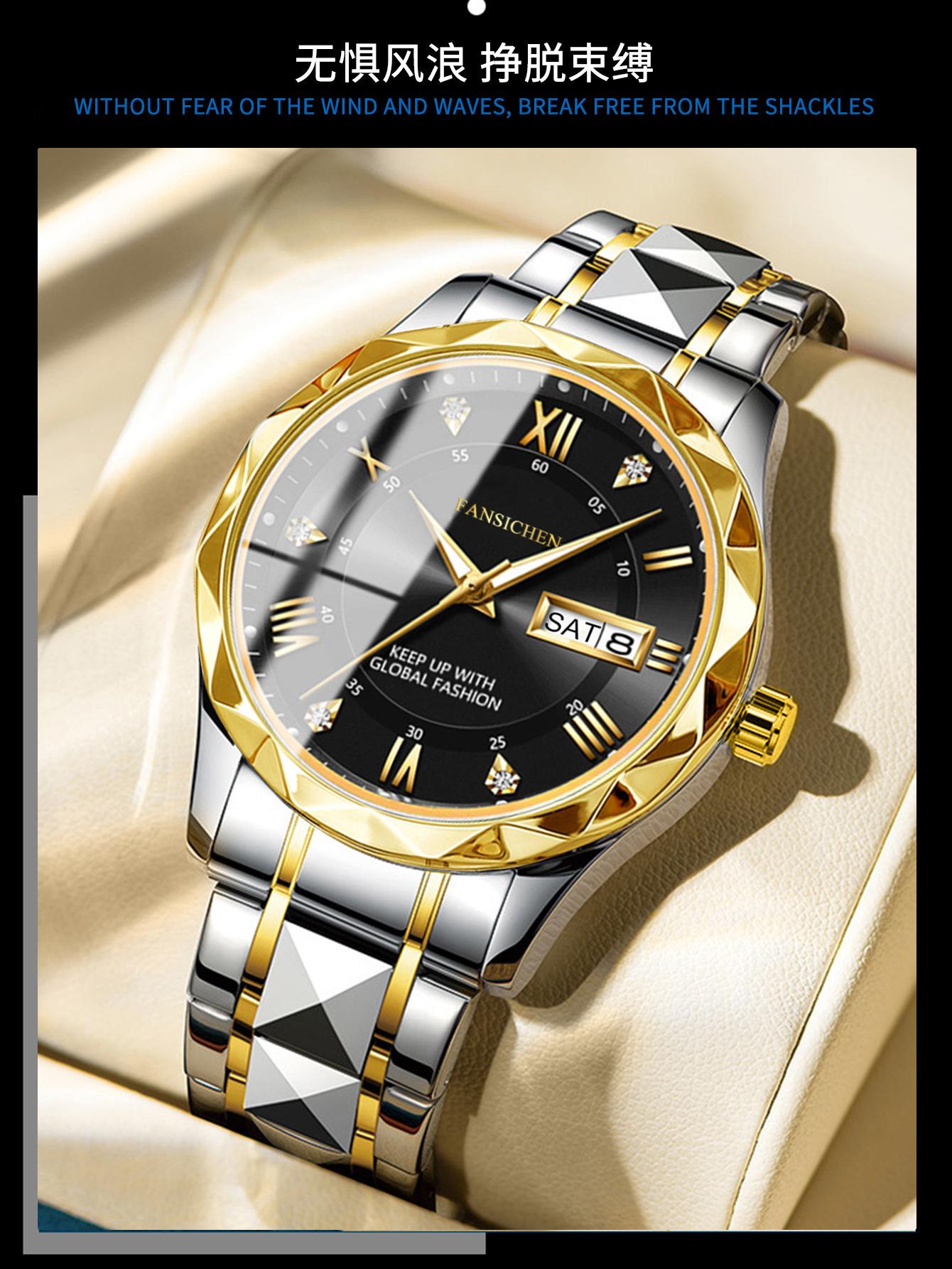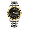 Caja de Reloj de Negocios Reloj de Hombre Correa Dorada de Acero Inoxidable Resistente al Agua Doble Calendario Cuarzo Dropshipping Esfera Grande