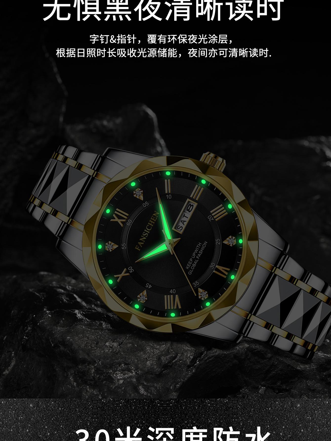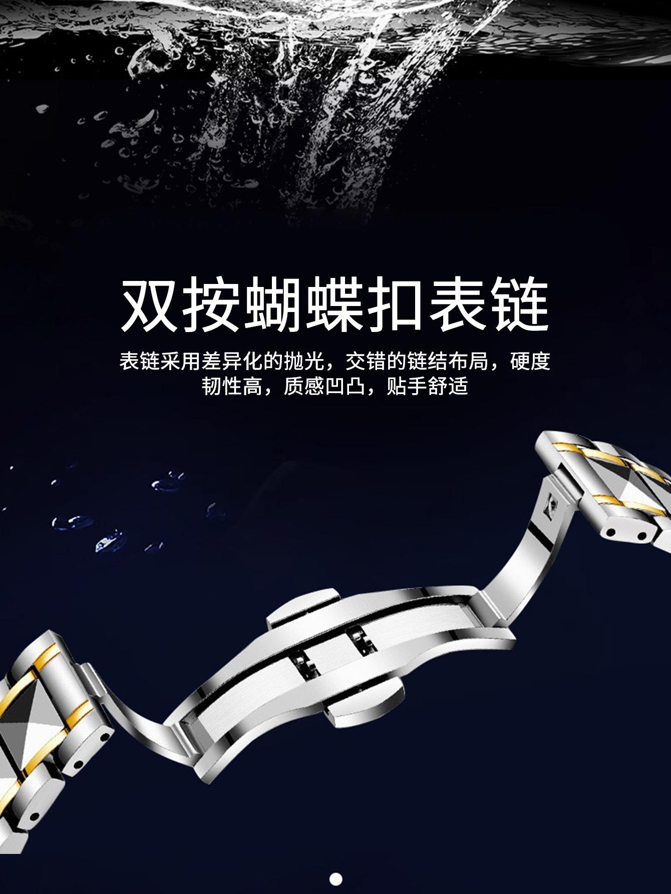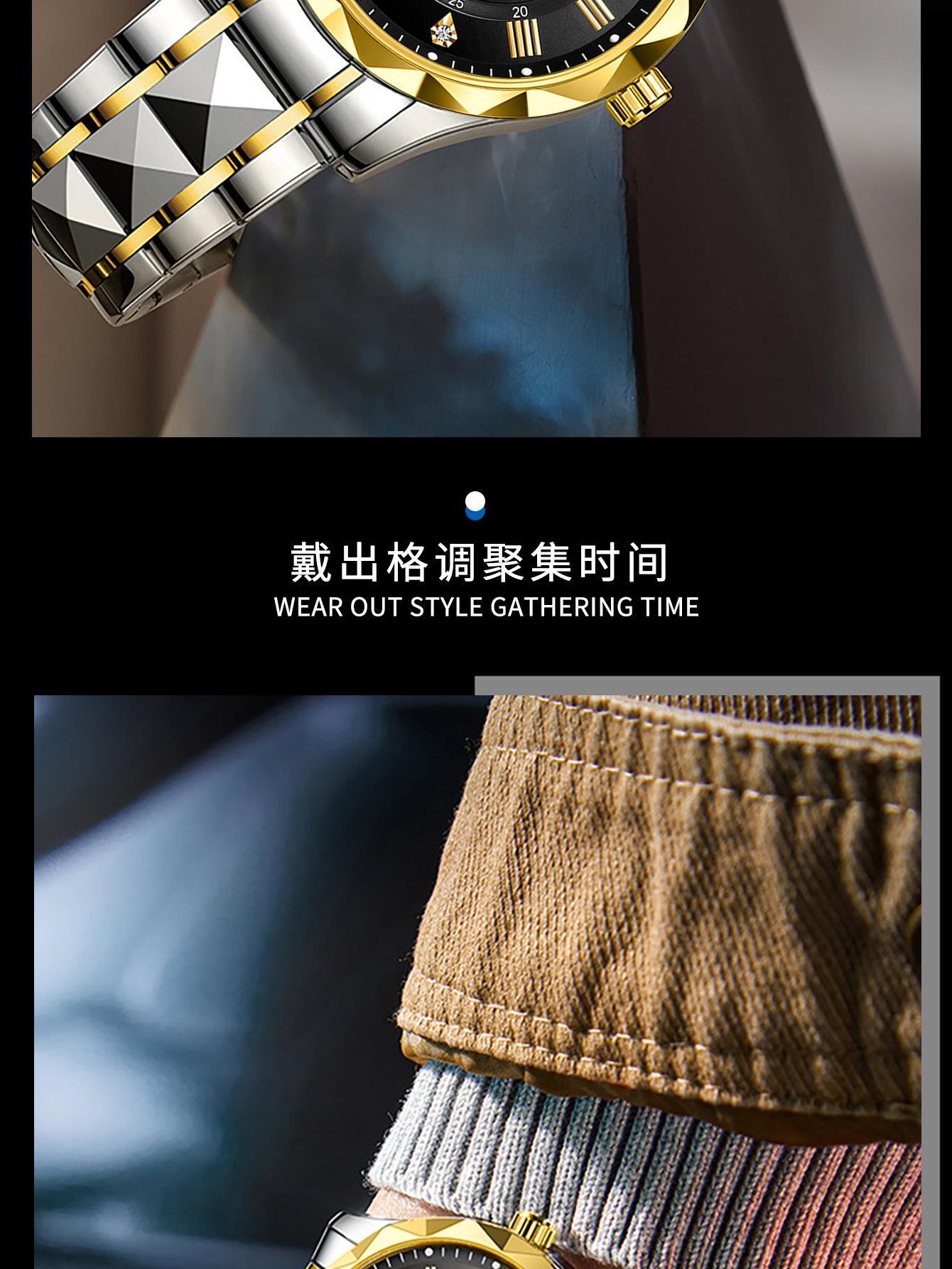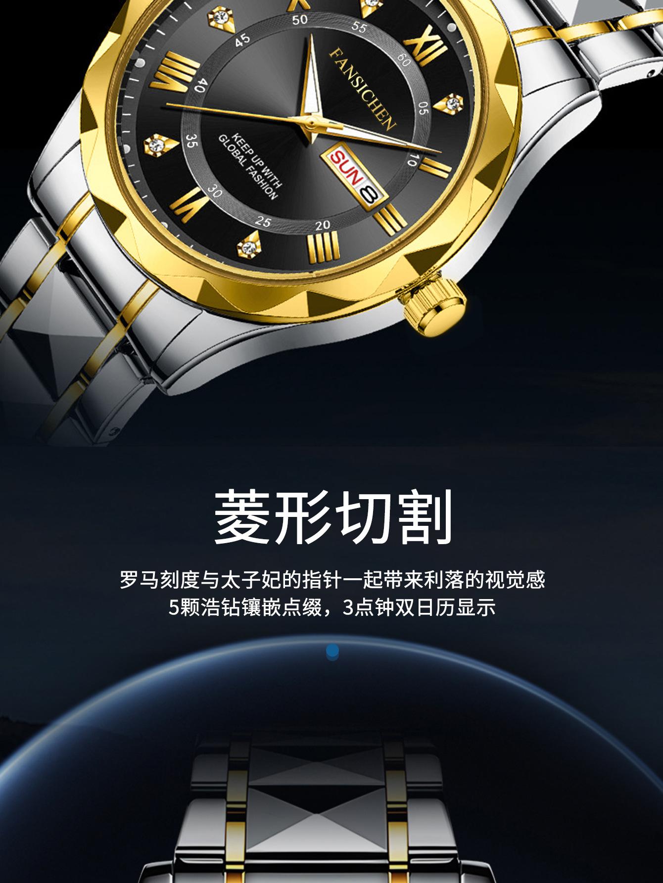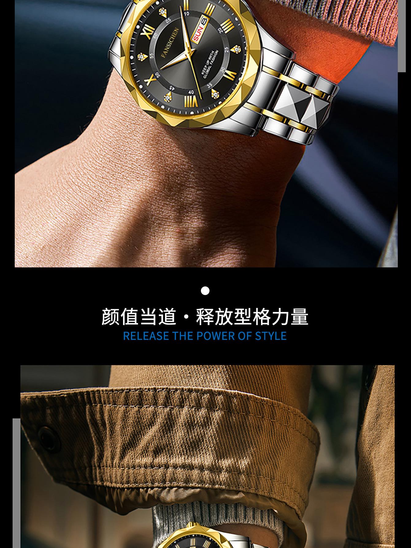 Caja de Reloj de Negocios Reloj de Hombre Correa Dorada de Acero Inoxidable Resistente al Agua Doble Calendario Cuarzo Dropshipping Esfera Grande