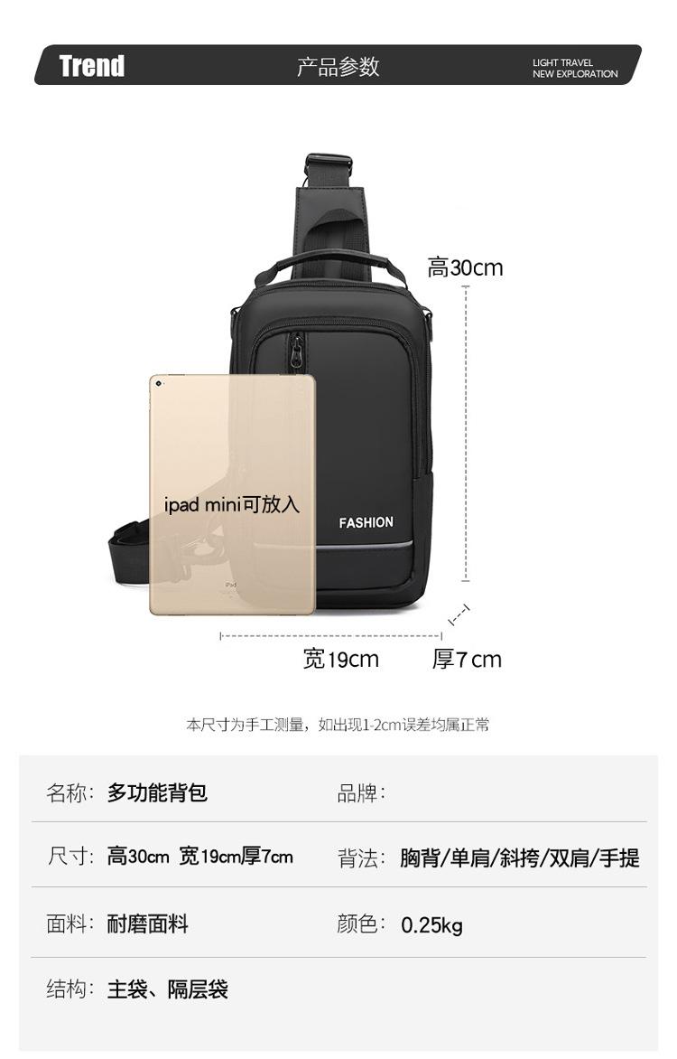 Bolsa de Almacenamiento de Gran Capacidad Deportiva de Moda Popular Bolsa de Pecho Bandolera Transfronteriza para Hombre Mochila de Negocios Multifuncional Portátil