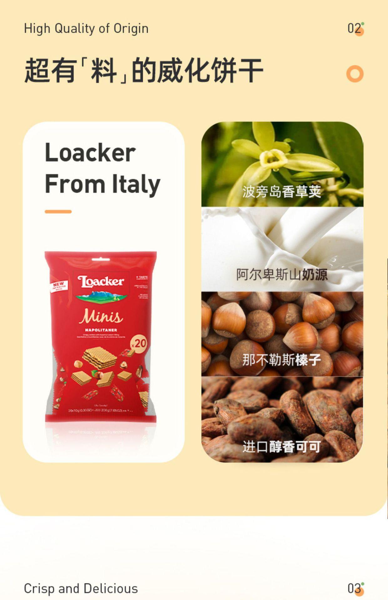 Galletas de oblea con sabor a avellana Loacker Laijia importadas de Italia, 20 bolsas pequeñas y 200 g, bolsas grandes para regalo.