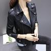 Chaqueta Nueva de Cuero PU para Primavera y Otoño 2025 para Mujer, Chaqueta Pequeña Corta de Motocicleta Negra Casual para Mujer, Chaqueta de Cuero Slim de Cintura Alta