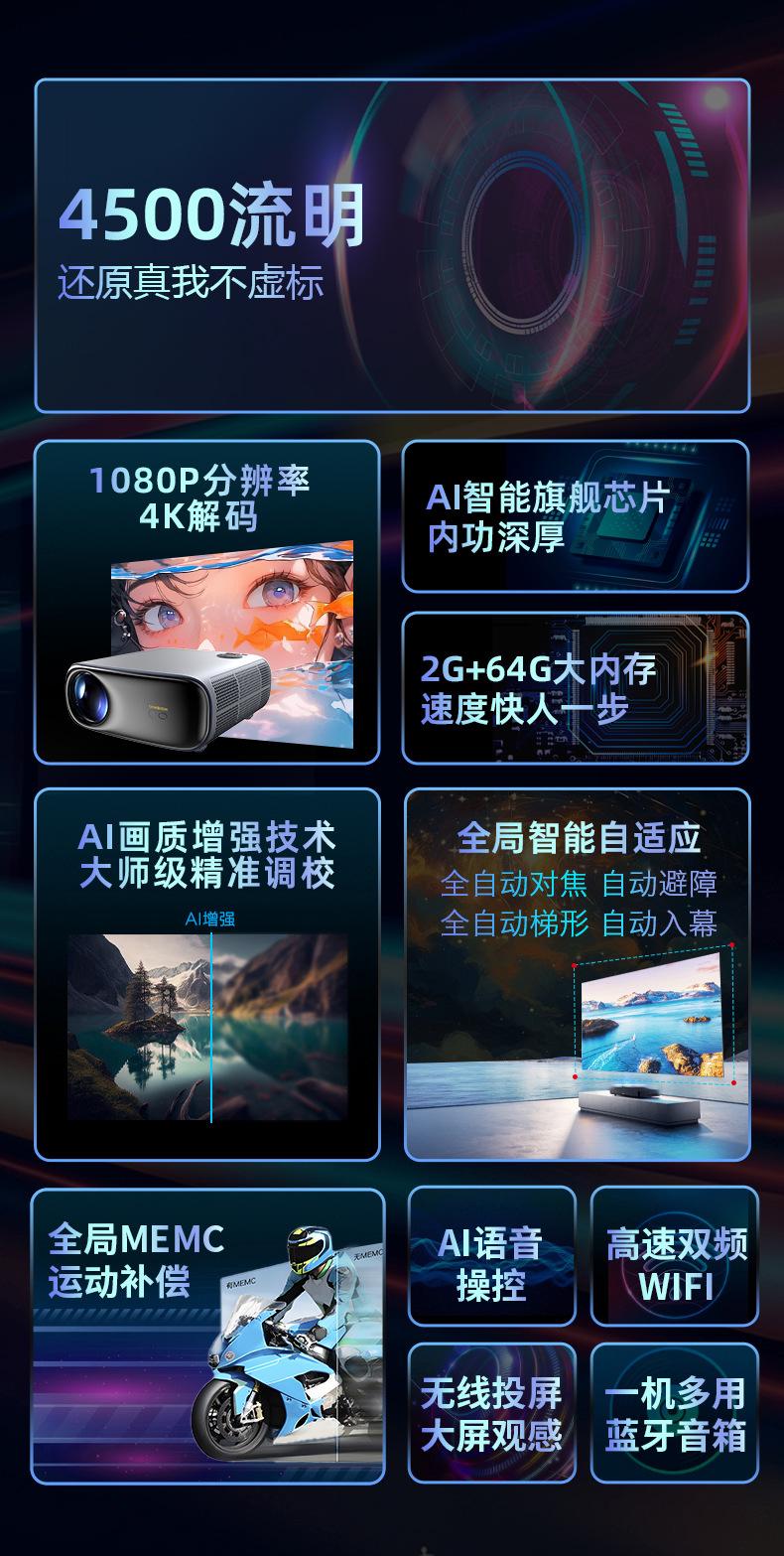 2025 Nuevo Proyector de Hotel 4K Ultra-Claro con Enfoque Automático Proyección en Pared Doméstica Proyector para Dormitorio Teatro en Casa Patio