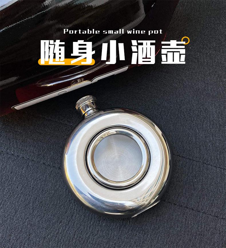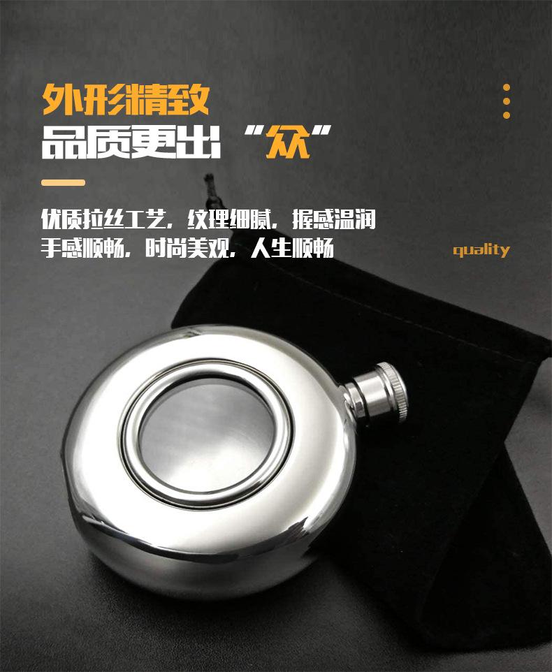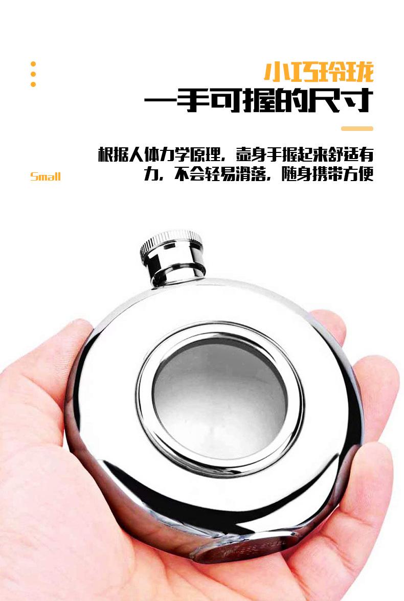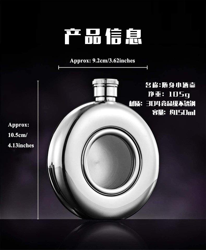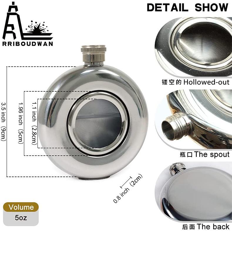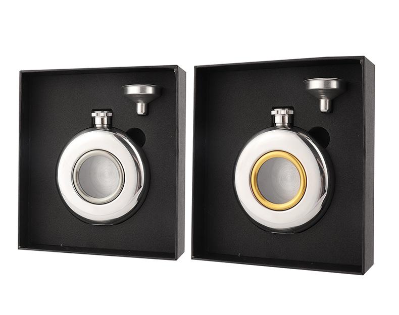 Petaca redonda de acero inoxidable de 5 oz con decoración de vidrio moda para hombres y mujeres petaca portátil para vino en stock