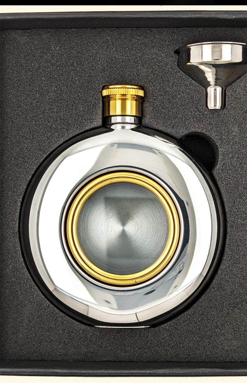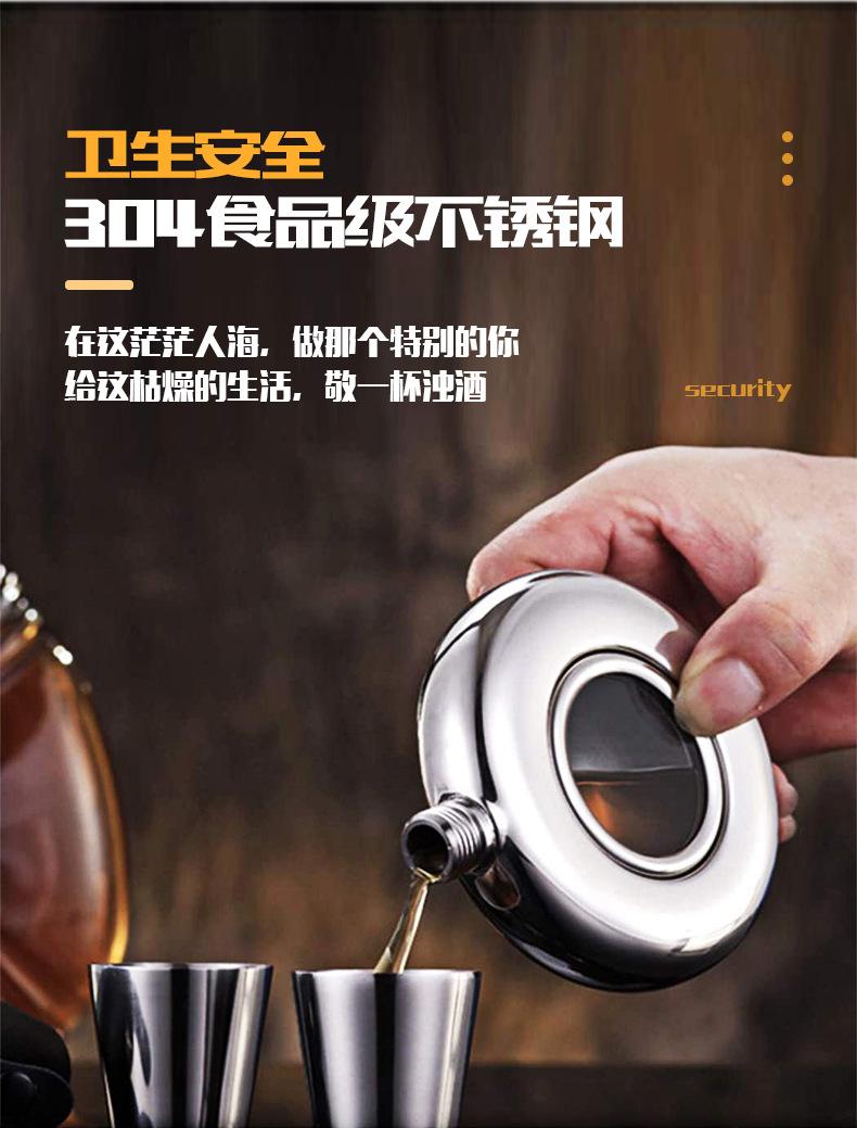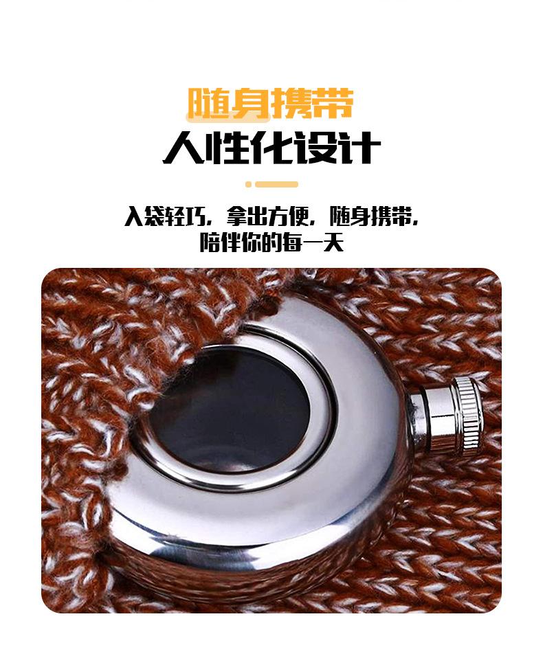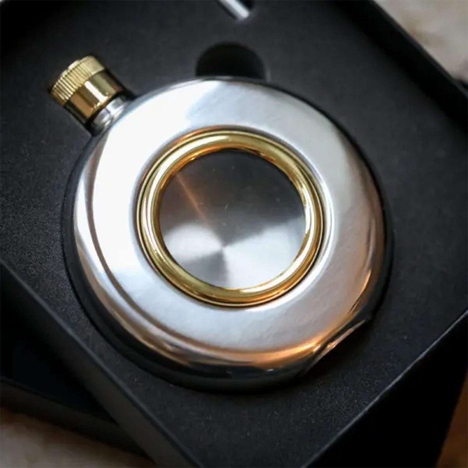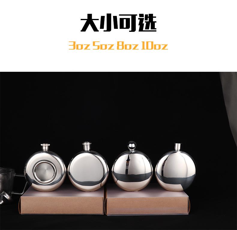 Petaca redonda de acero inoxidable de 5 oz con decoración de vidrio moda para hombres y mujeres petaca portátil para vino en stock