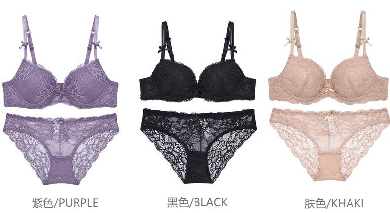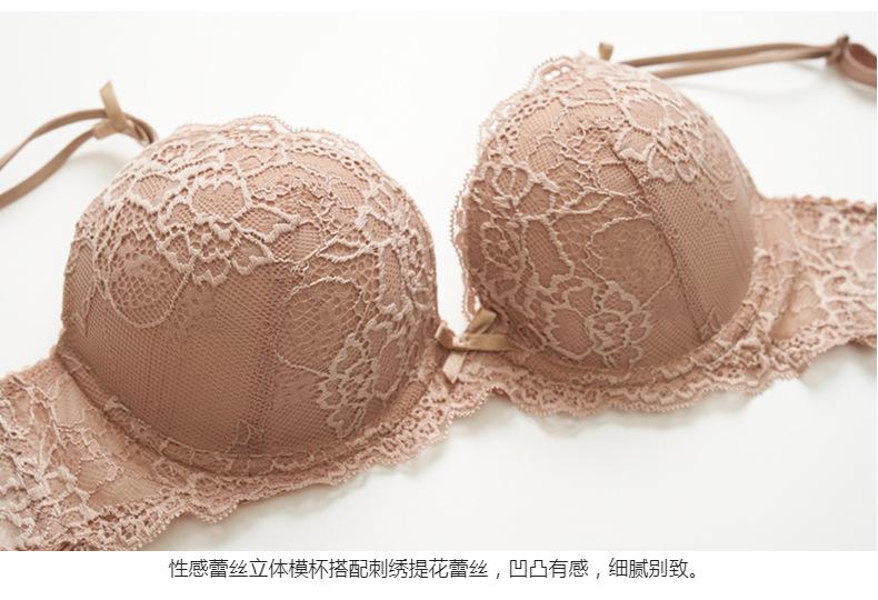 Una pieza nuevo encaje europeo y americano pecho pequeño ropa interior sexy almohadilla realzada conjunto de sujetador para damas 16002 |