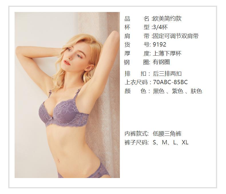 Ventas directas de fábrica Conjunto de sujetador sexy de encaje europeo y americano Tentación para damas Pecho pequeño Ropa interior realzada Sujetador acolchado 9192 |