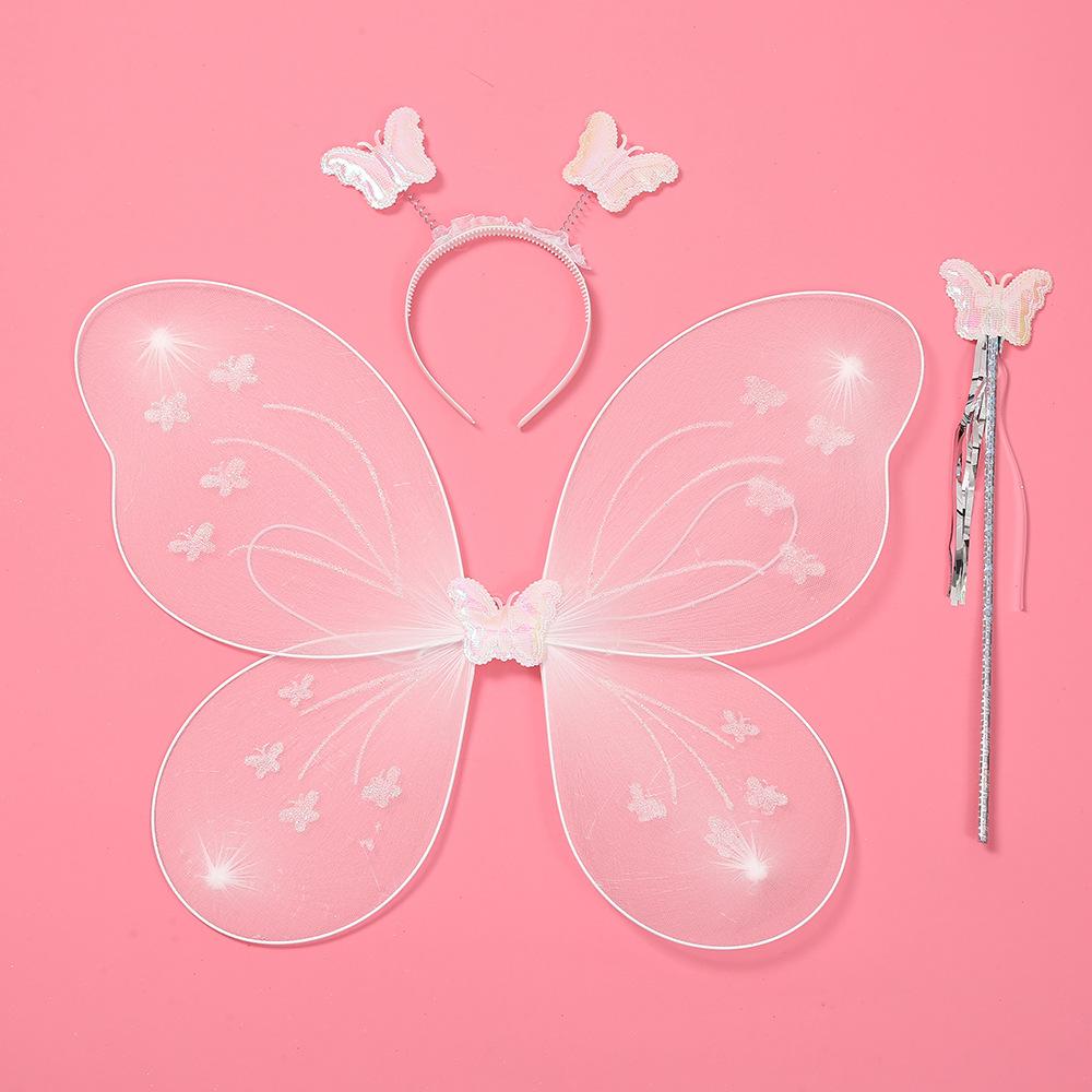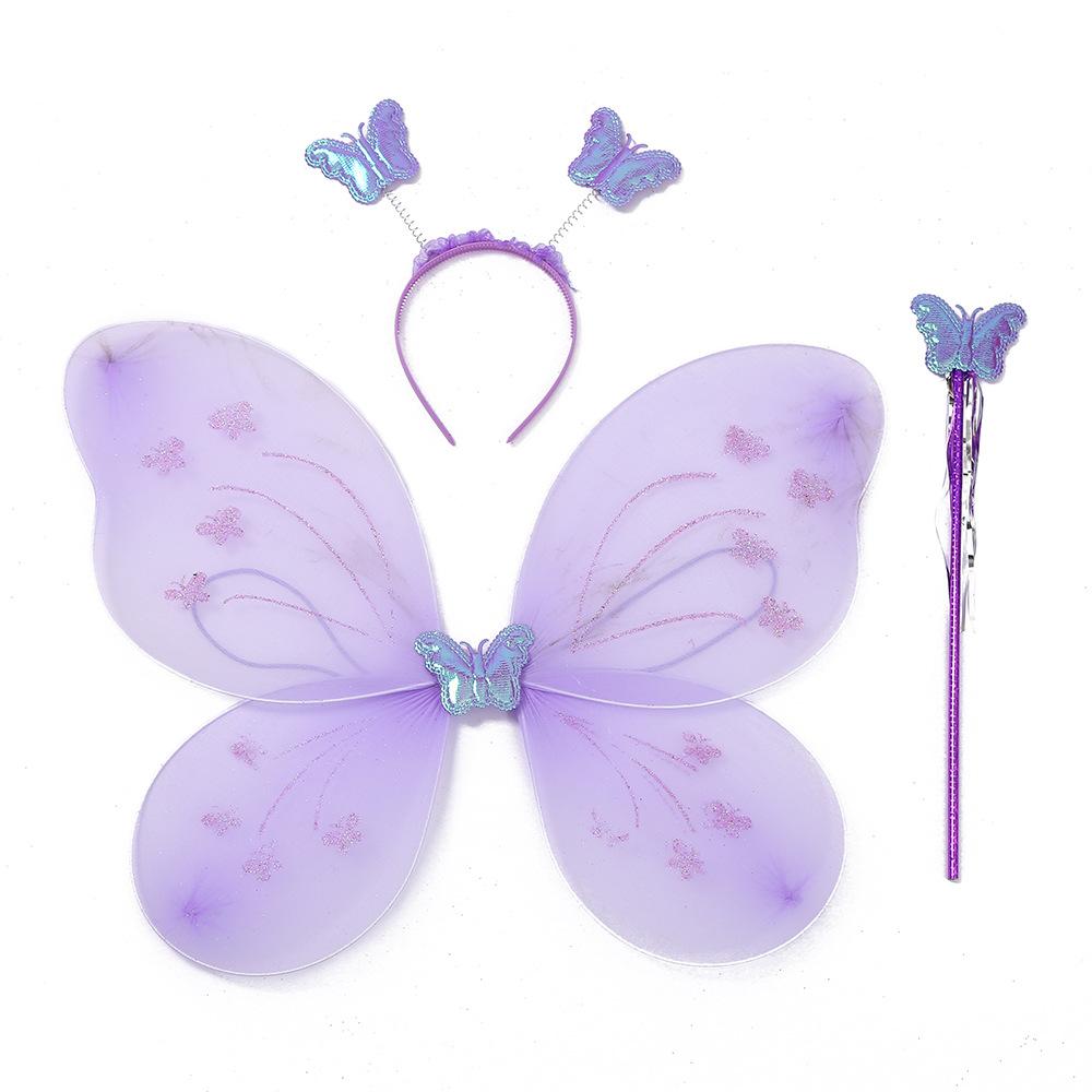 Nuevas Alas 8 Mariposa Decoración de Espalda para Niños Varita Mágica Tocado Hada de las Flores Juguete Juego de Tres Piezas para Niños Fabricante Venta al por Mayor
