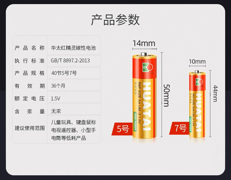 Huatai No. 7 Elfo Rojo Juguete de Alta Potencia 1.5Vp Tipo No. 5 Batería No. 7 Batería seca No.. 5 Baterías al por mayor