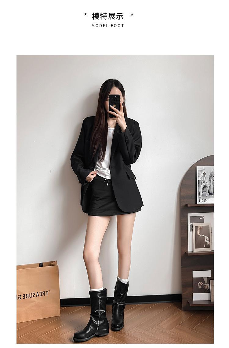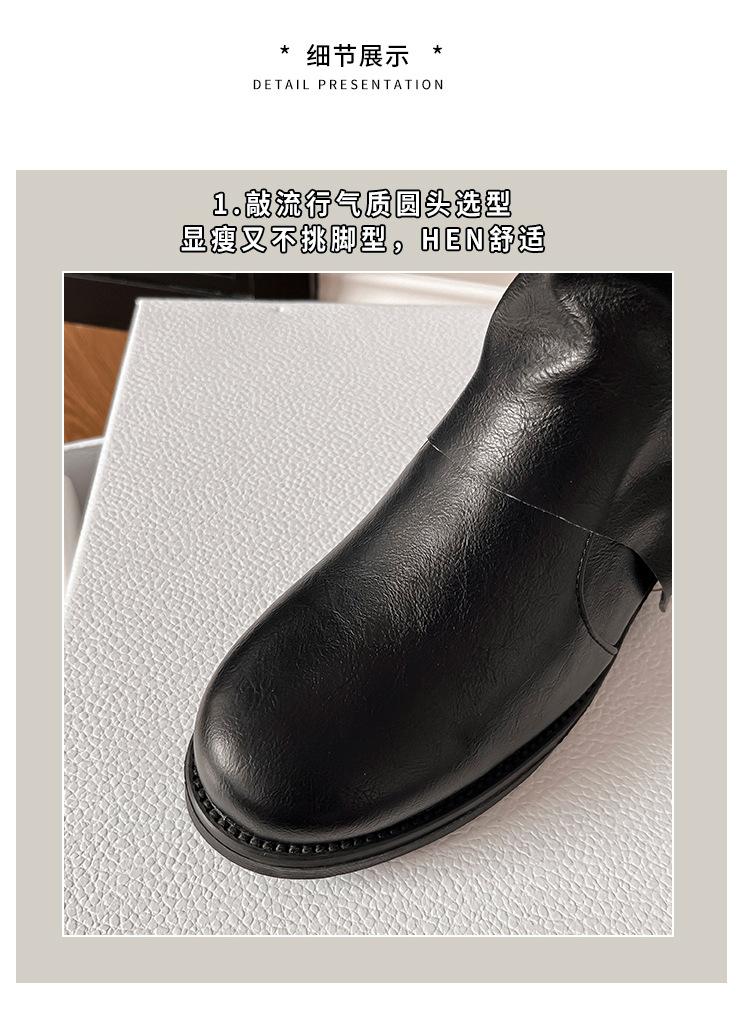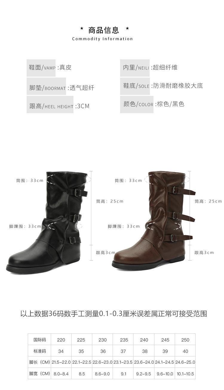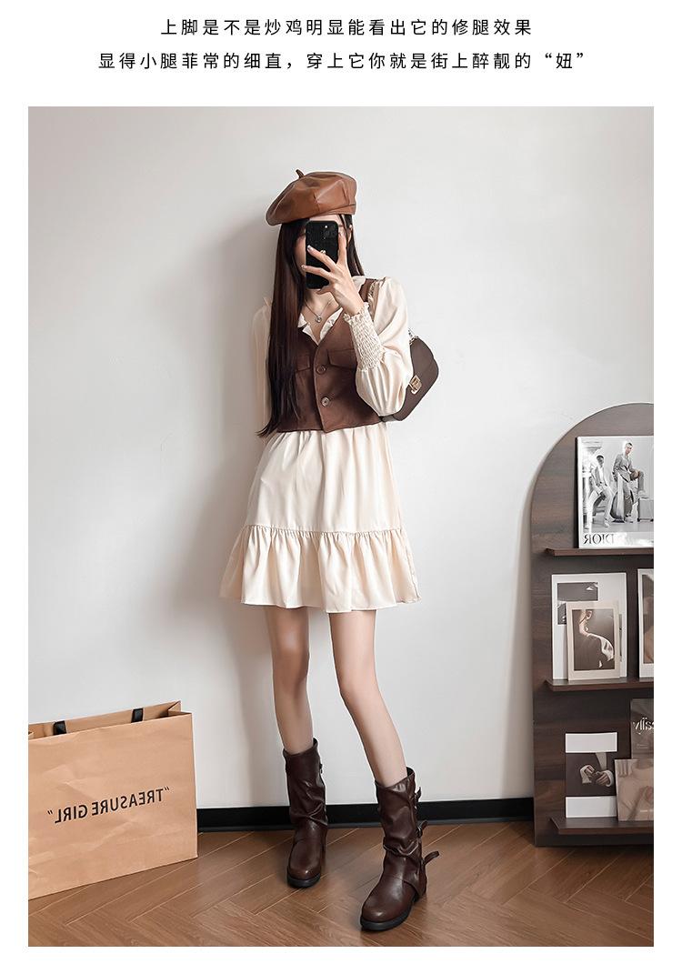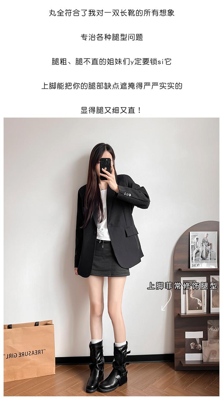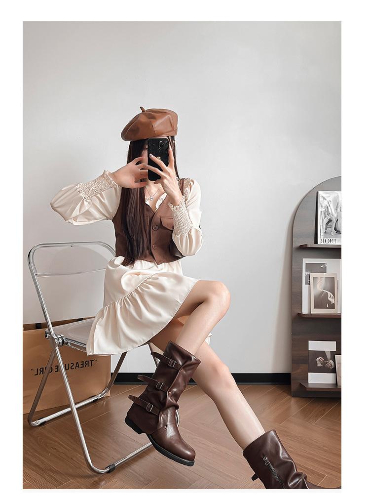 Botas con hebilla de cinturón de viento y tierra baldía, otoño e invierno 2024, nuevas botas vaqueras occidentales de tubo medio retro, botas plisadas para mediana edad