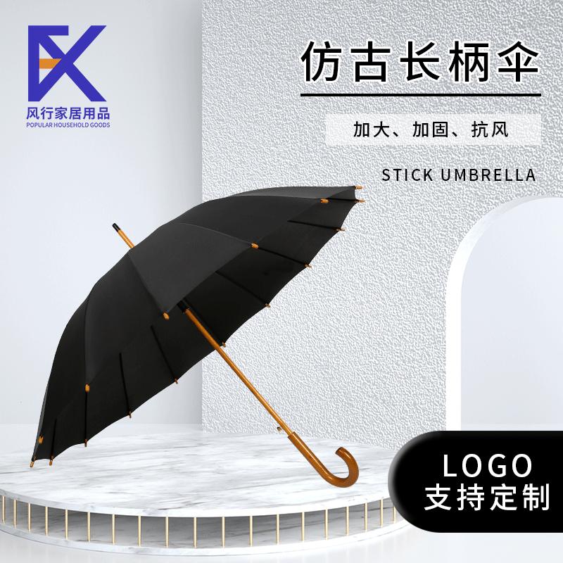 Paraguas de golf recto de 16 colores sólidos, nuevo, pequeño, fresco, con mango largo y mango curvo, paraguas publicitario con logotipo impreso.