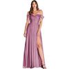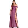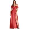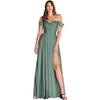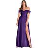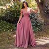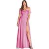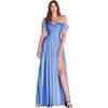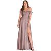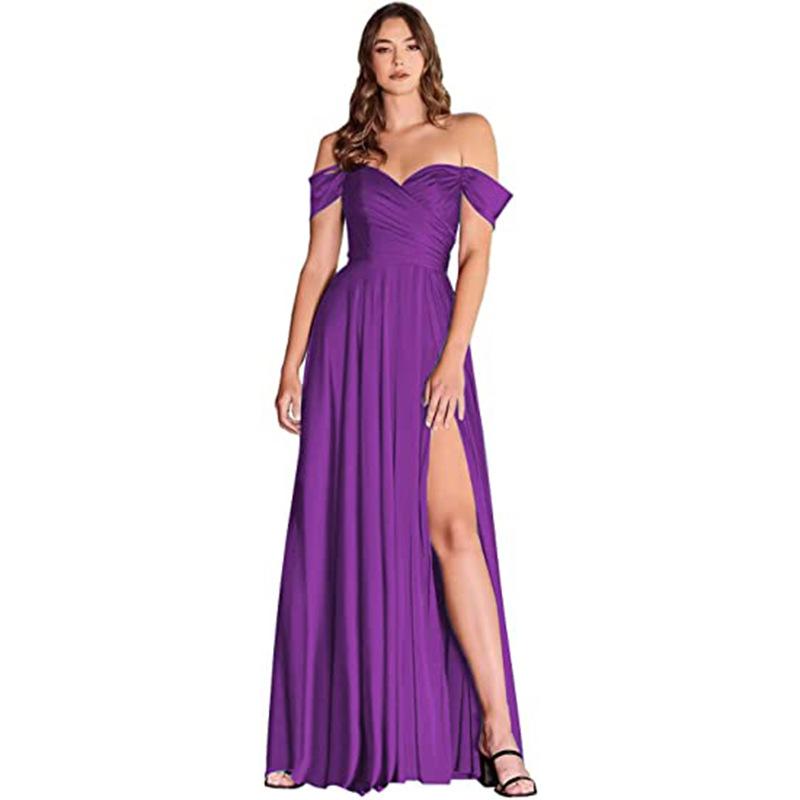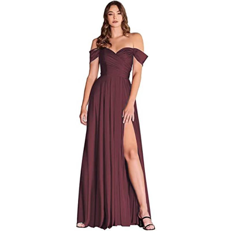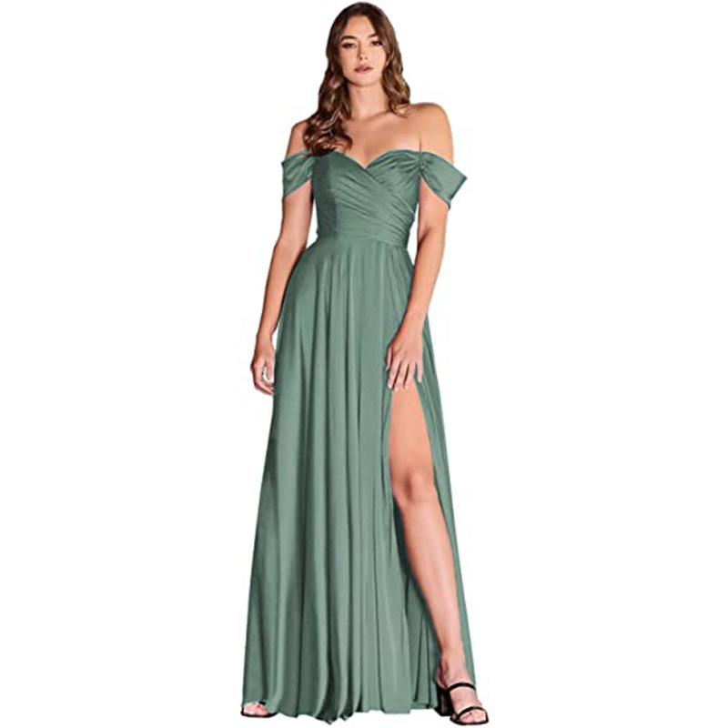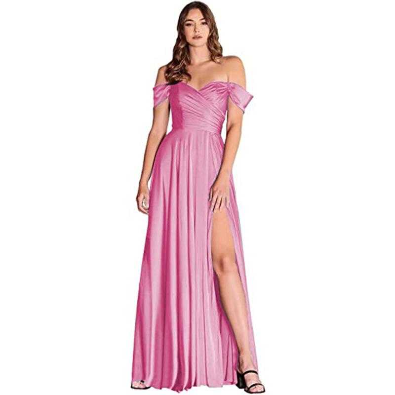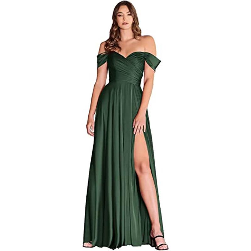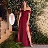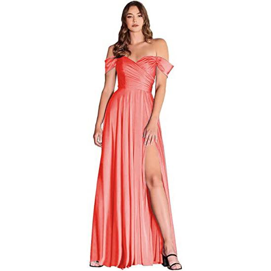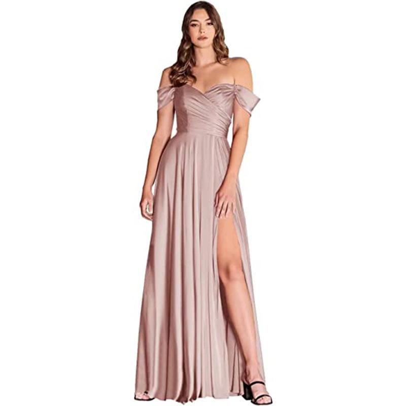 Vestido de dama de honor de satén fluido con hombros descubiertos, vestido formal fruncido con abertura para boda, vestido de noche, vestido largo de fiesta