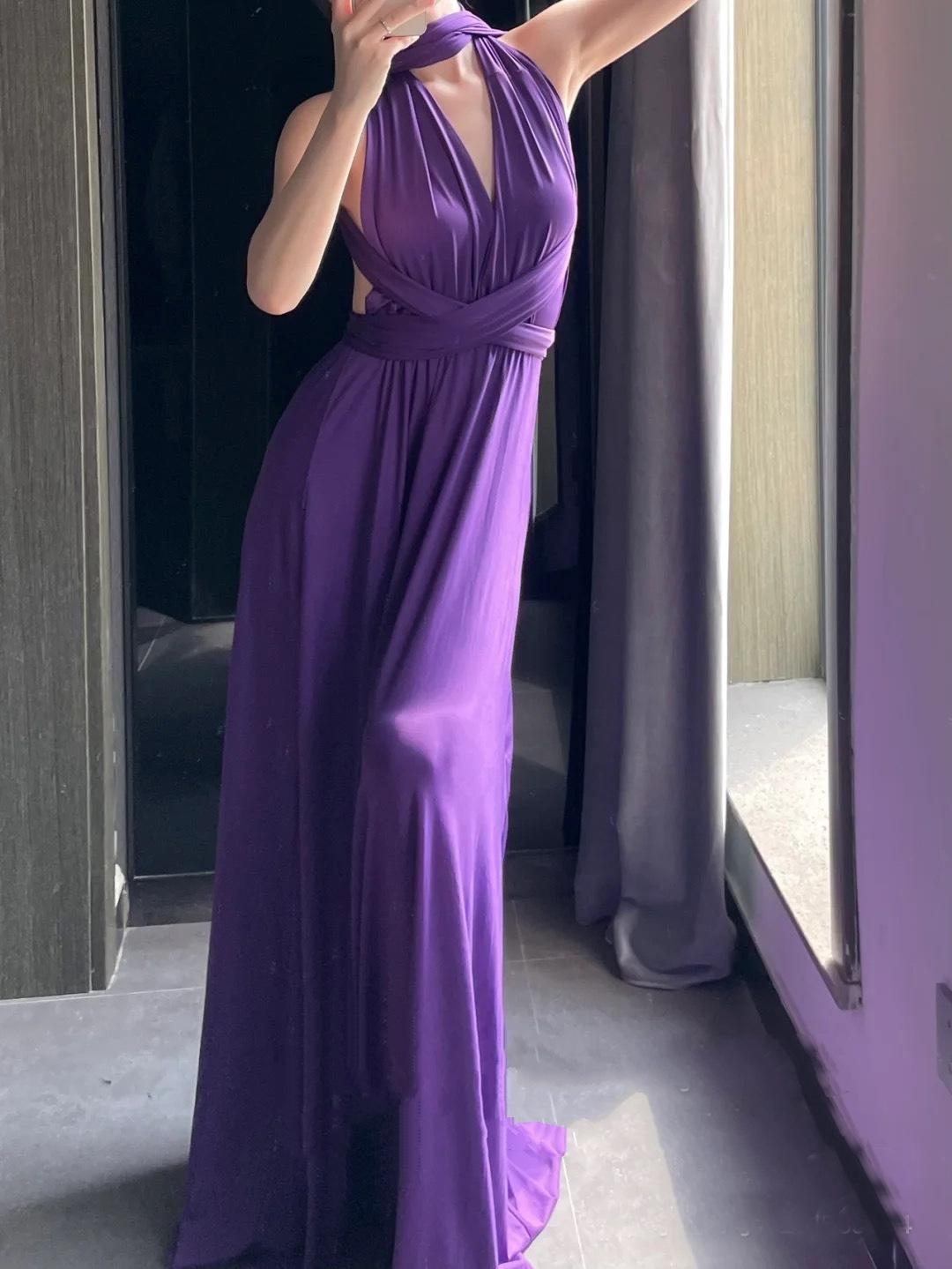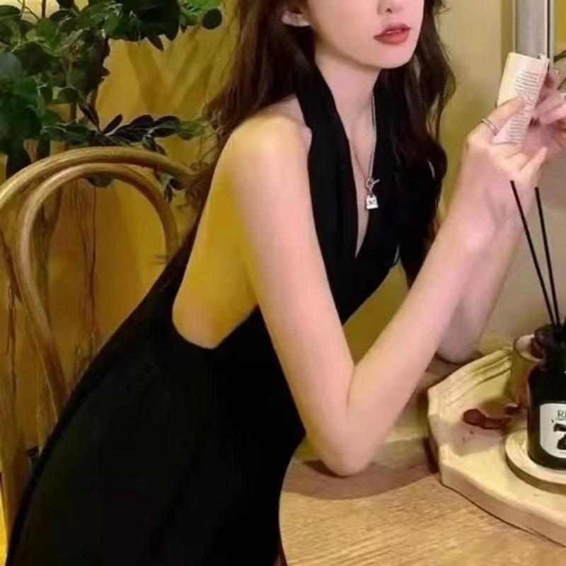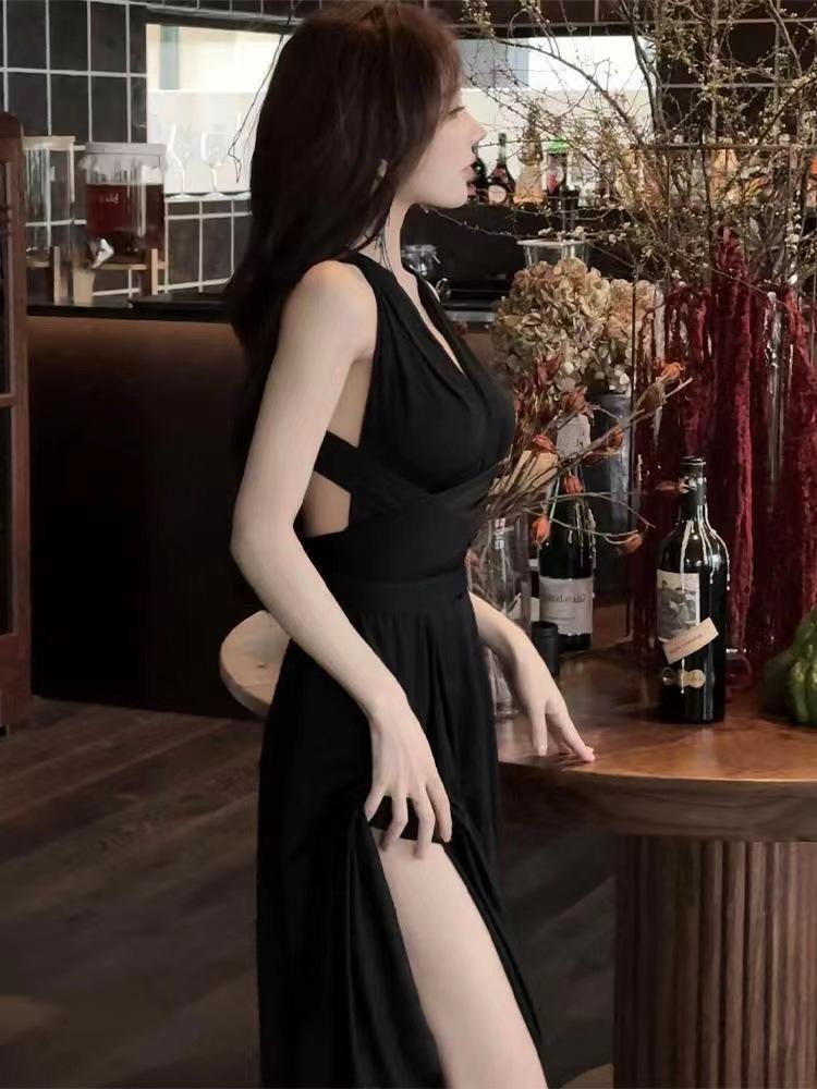 Yujie Wear Vestido de verano con tirantes cruzados, sexy, sin espalda, con tirantes huecos, aspecto ajustado, largo