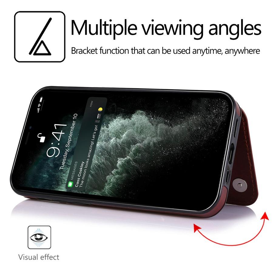 Funda de cuero para teléfono móvil con doble hebilla, color sólido, compatible con comercio exterior, para iPhone 14 Pro Max, funda protectora con inserción de tarjeta tipo billetera para Apple 13
