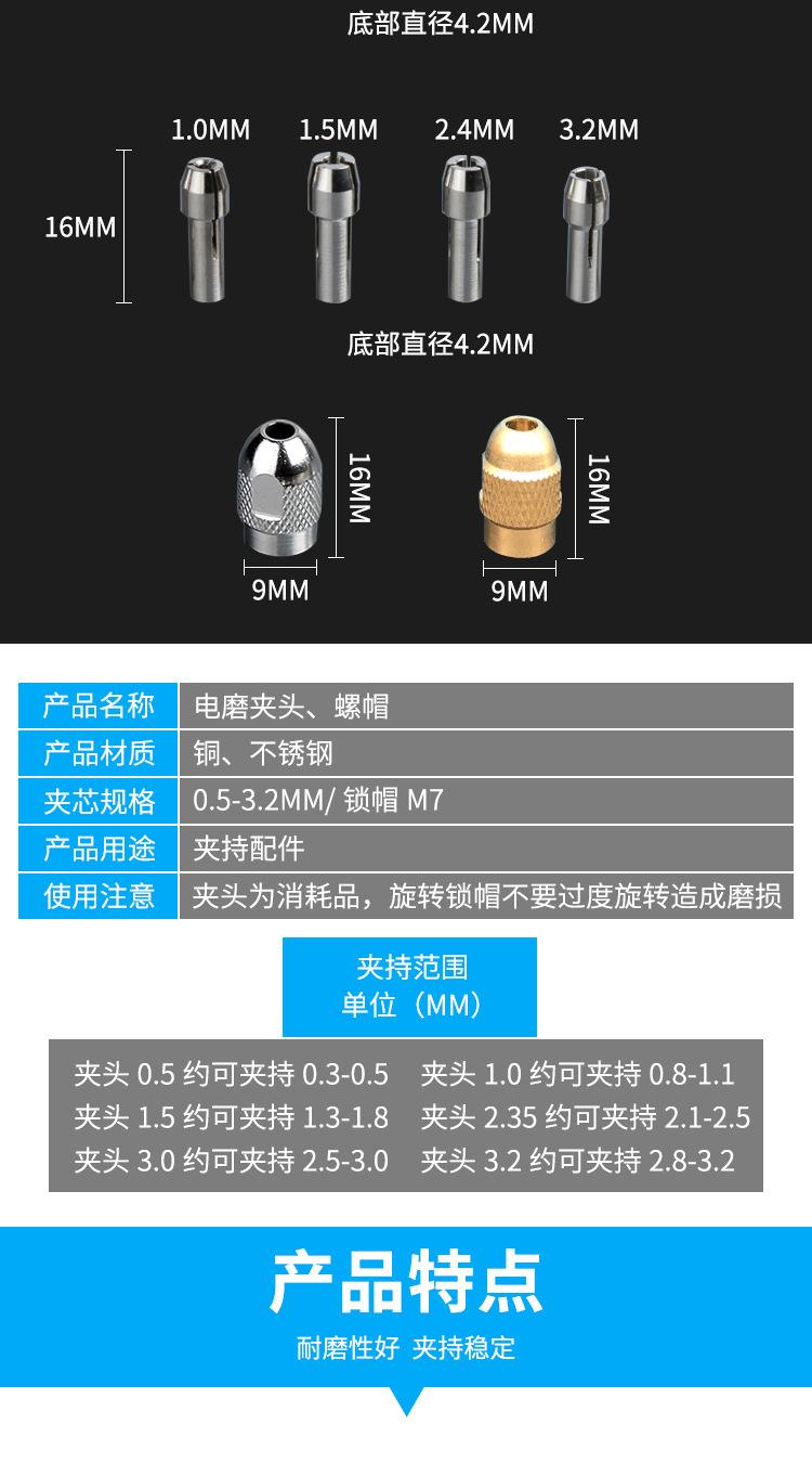 Rectificadora eléctrica, mandril para rectificadora eléctrica, mandril para taladro eléctrico, sándwich de cobre, sándwich de latón, tuerca de mandril, accesorios para rectificadora eléctrica M7M8